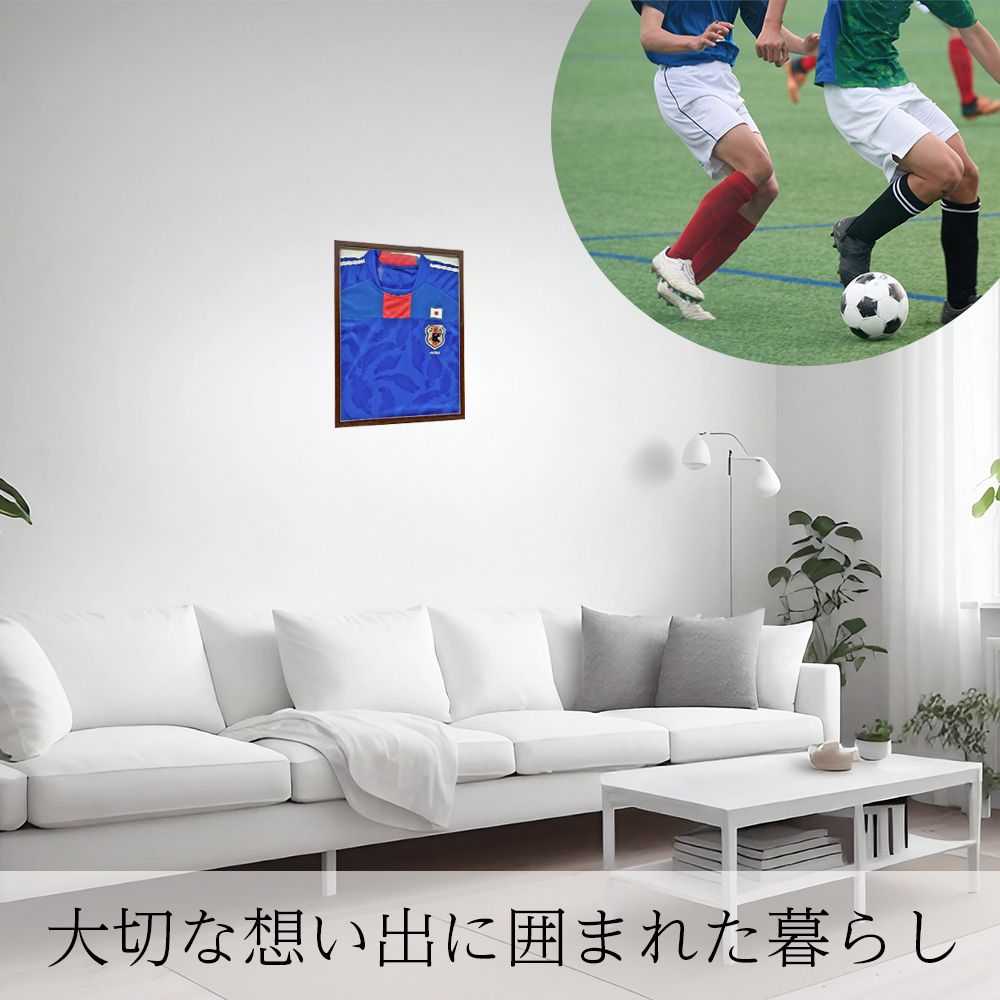 ユニフォーム、Tシャツをハンガーに着せてから額縁に納めてください。