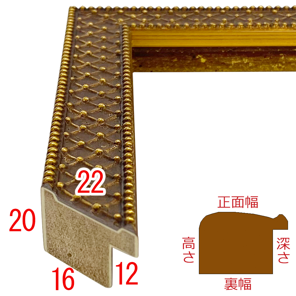 木製、オーダー製作専用フレーム。繊細な格子模様が可愛らしい、赤みがかったアンティークゴールドの額縁。