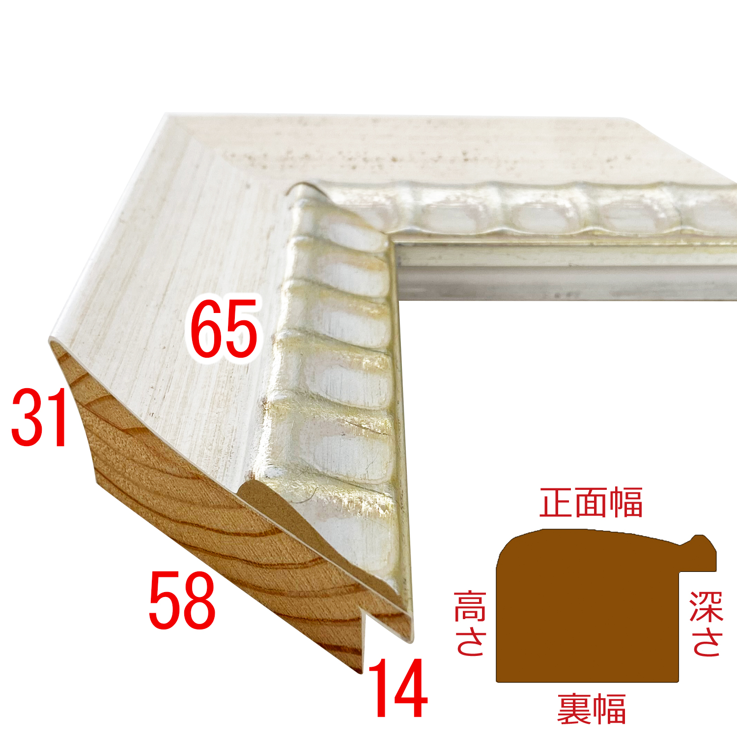 木製、オーダー製作専用フレーム。イタリア製の高級モールディングです。比較的シンプルなデザインですが、ボリューム感のある形状が目を引きます。