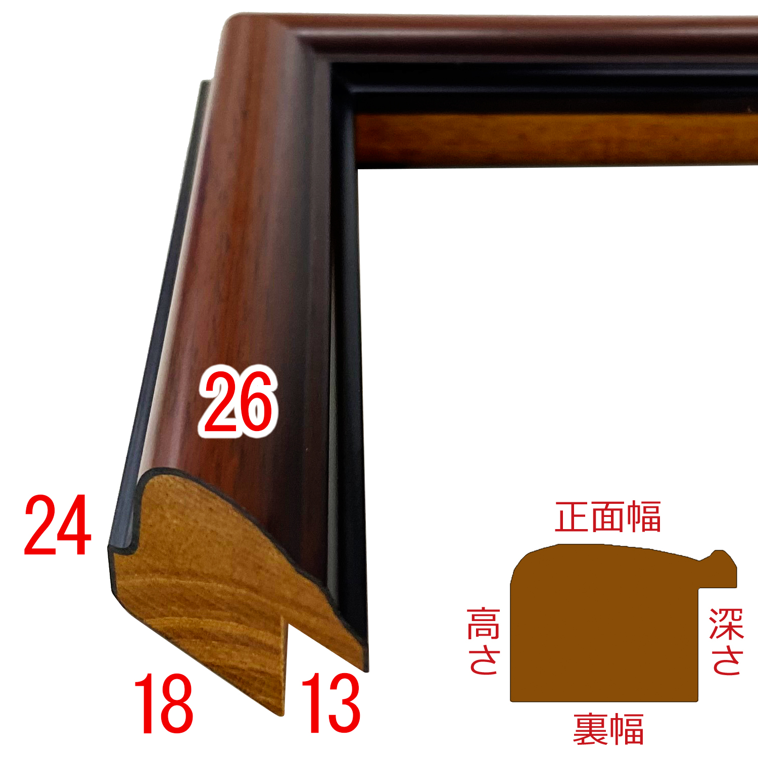 木製、オーダー製作専用フレーム。グラデーションになった木目が魅力的。上質な質感でさりげなく中身を引き立てます。