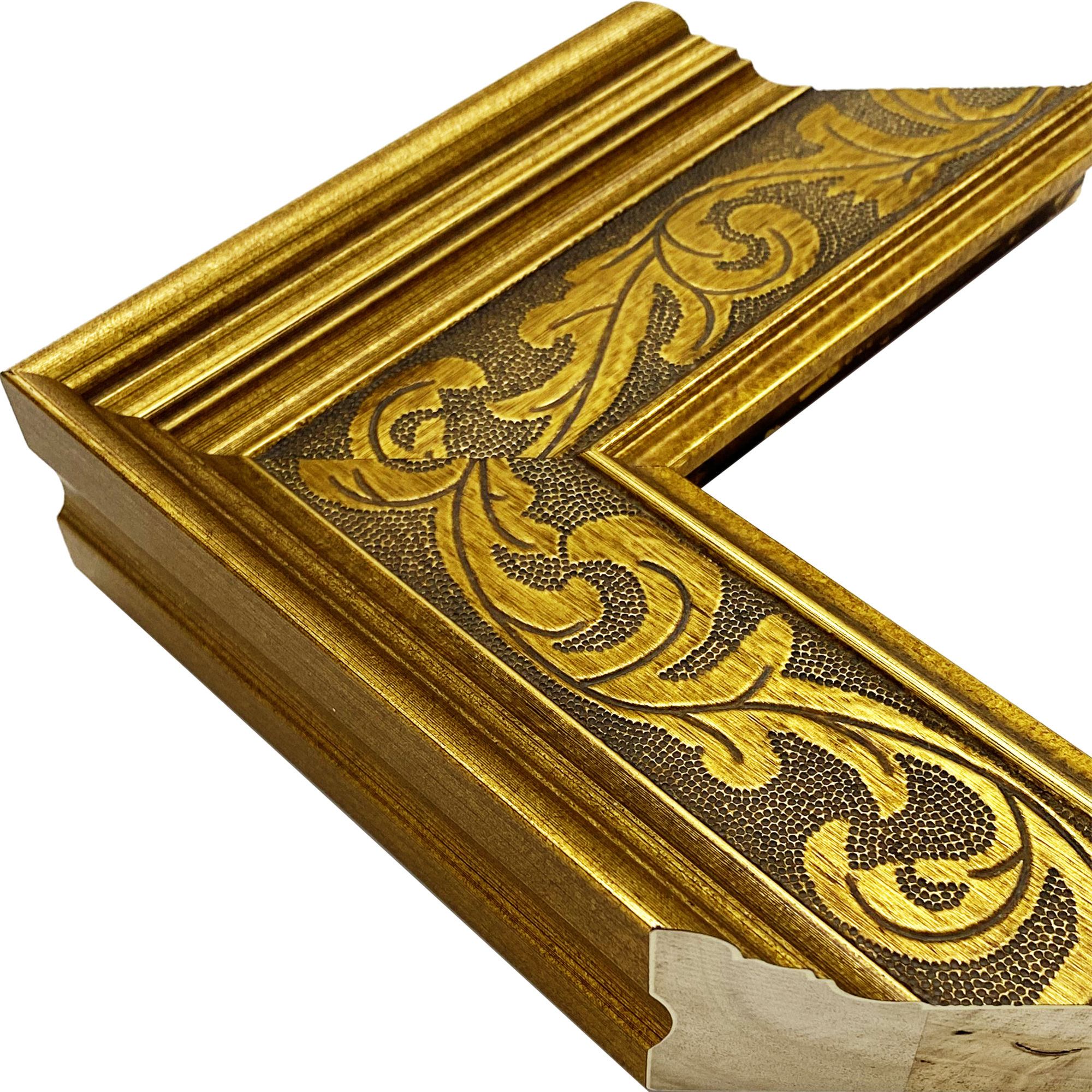 木製、オーダー製作専用フレーム。大柄のリーフ模様が優雅な印象を与える。南国を思わせるデザインの額縁です。