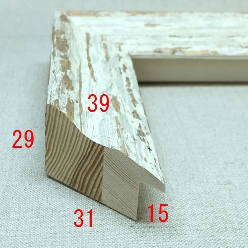 木製(パイン材)、オーダー製作専用フレーム。古びた木を再現したアンティーク風。下地が見え隠れするホワイト塗装です。