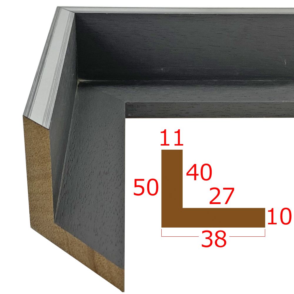 フロート額装用(浮かし額装用)の特殊モールディング。キャンバスやパネルを背面からネジ止めしてセットします。ネット上のご注文には未対応なので、お見積もりをご依頼ください。表面カバーは付けられないので、作品が剥き出しになります。短手900ミリまでの、縦横合計2400ミリまでで製作可能です。フロート額は、金属製の仮縁でもいくつかご用意しております。
