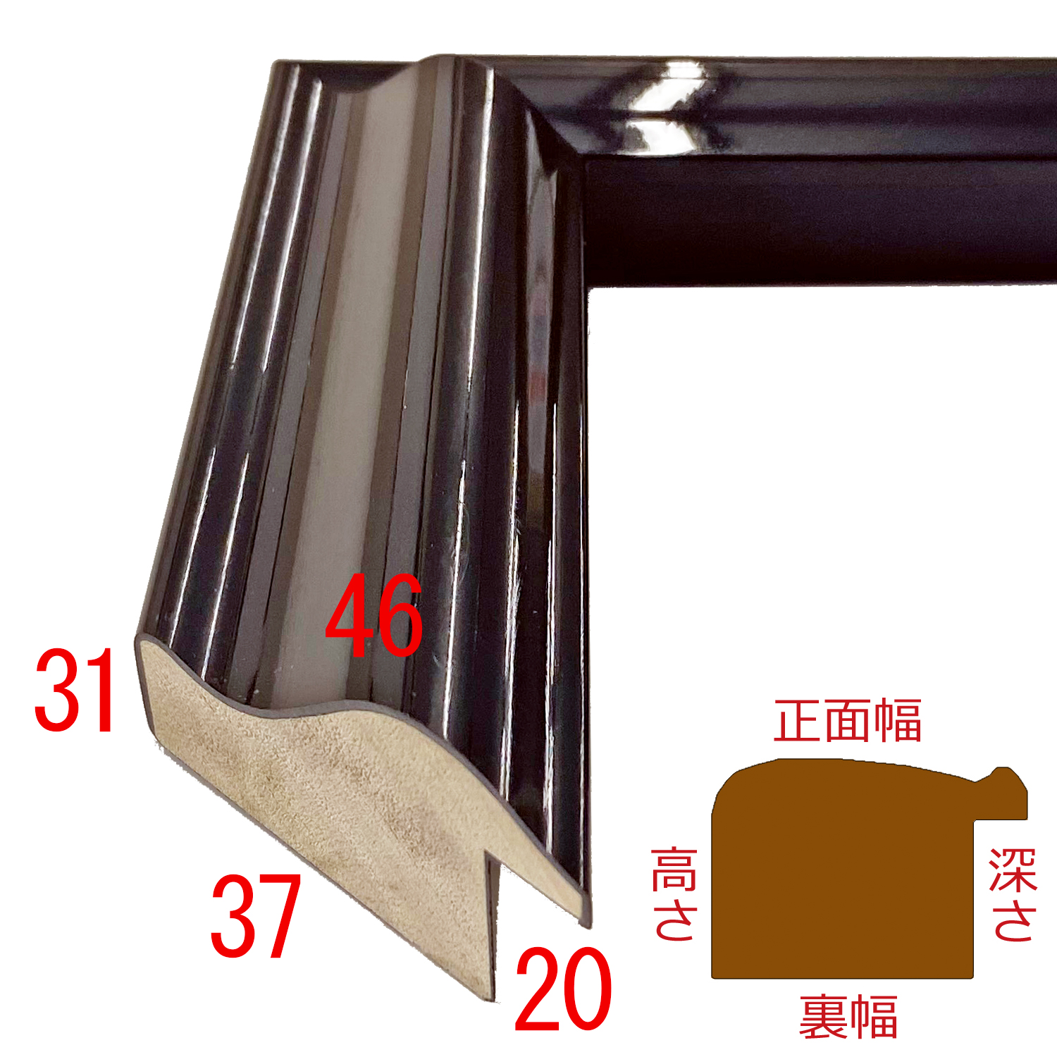 南洋材。オーダー製作専用フレーム。艶やかな塗装が美しい黒のフレームです。内側に盛り上がる曲線が更に目を引きます。
