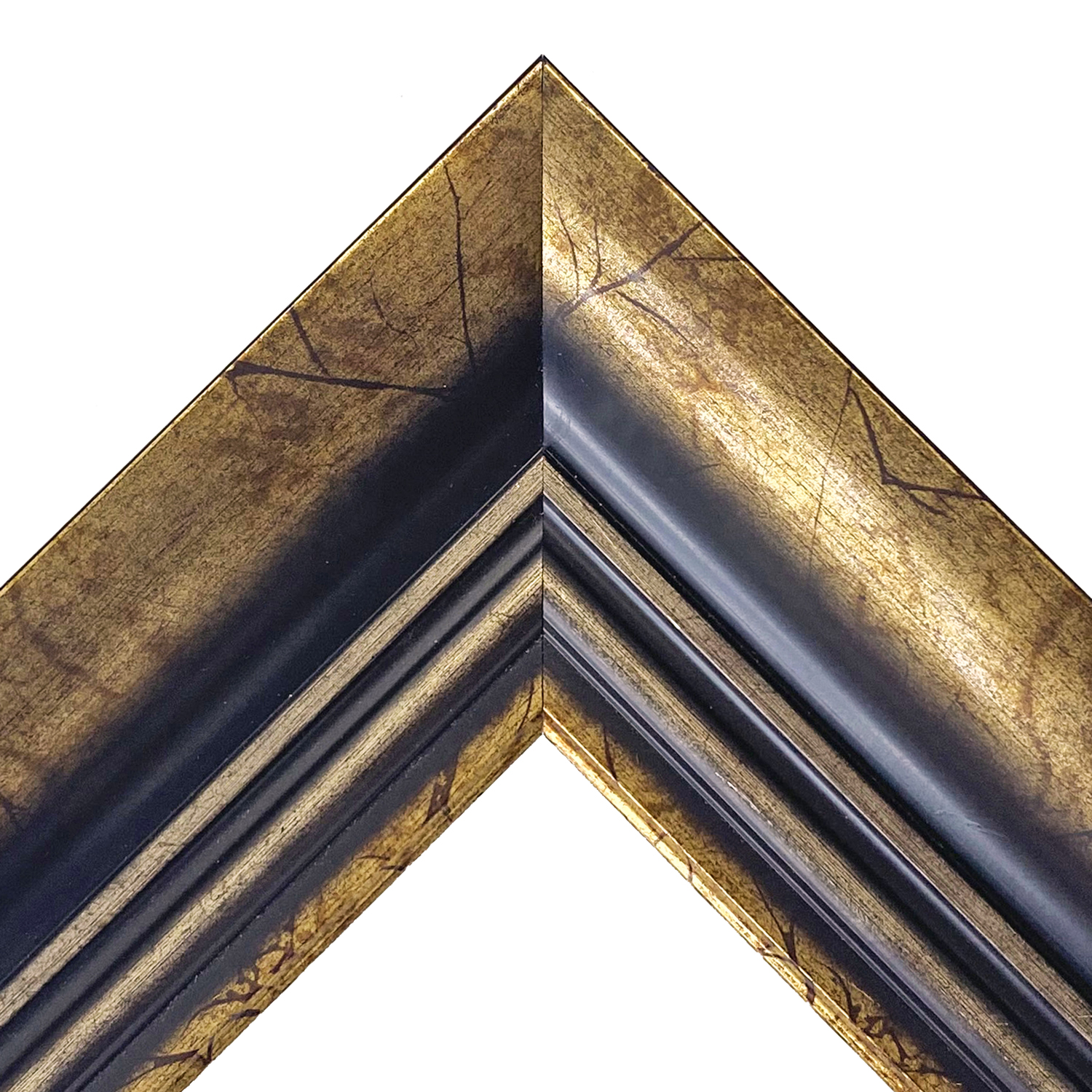 木製(パイン材)。オーダー製作専用フレーム。ひび割れ模様のあるゴールドフレーム。汚し加工が施されたいぶし金の色合いで、高級感のある仕上がりになります。