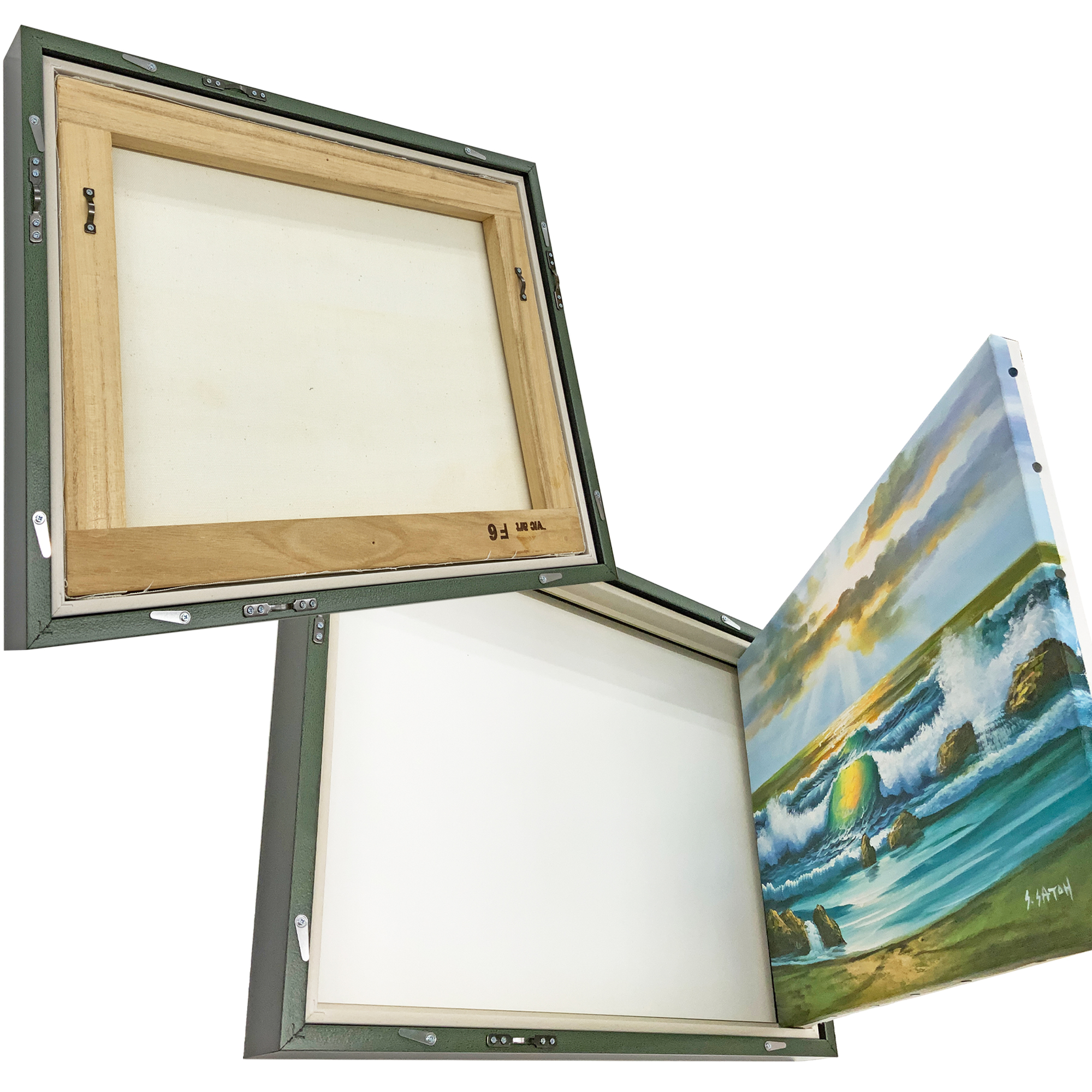 油絵額は絵画規格サイズで作られています。飾る作品と同サイズの額縁を選びましょう。はめ込み部分にはゆとりがあるので、1-2mmの誤差は問題ありません。セット方法については、こちらの動画でご紹介しております。