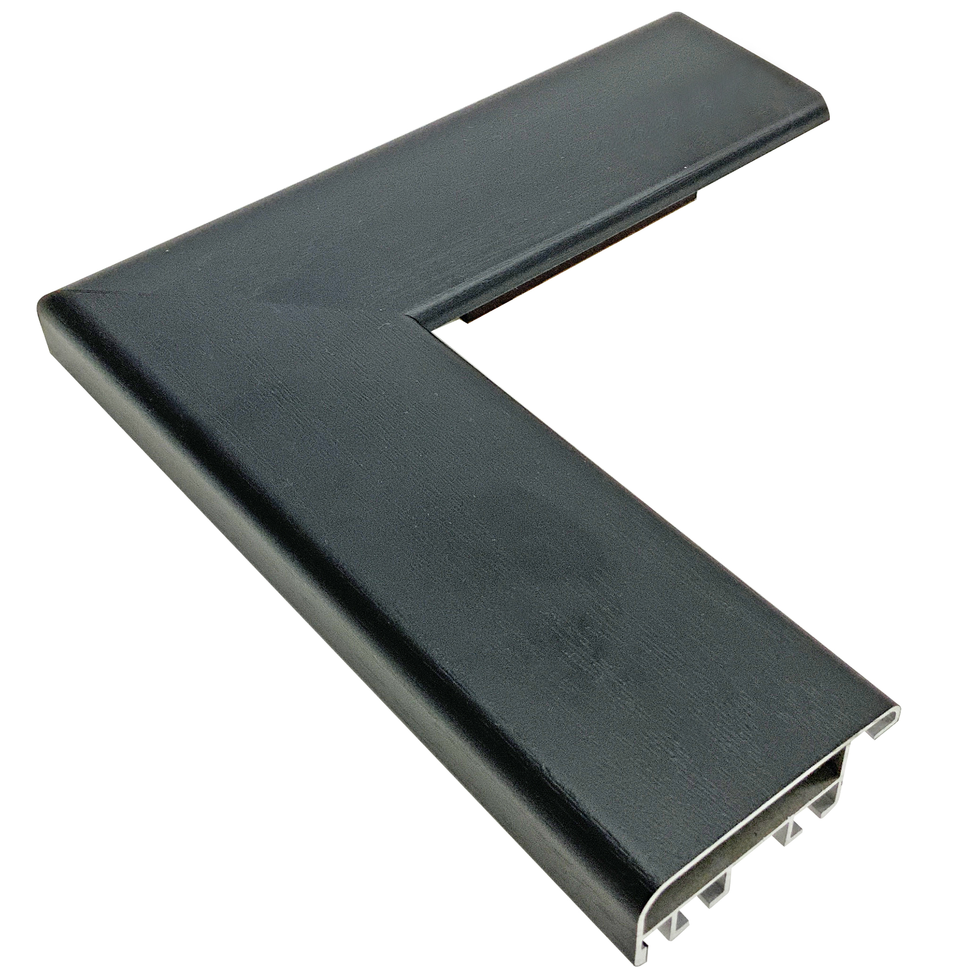 黒木目のラッピング加工、太目のフラットなアルミフレーム