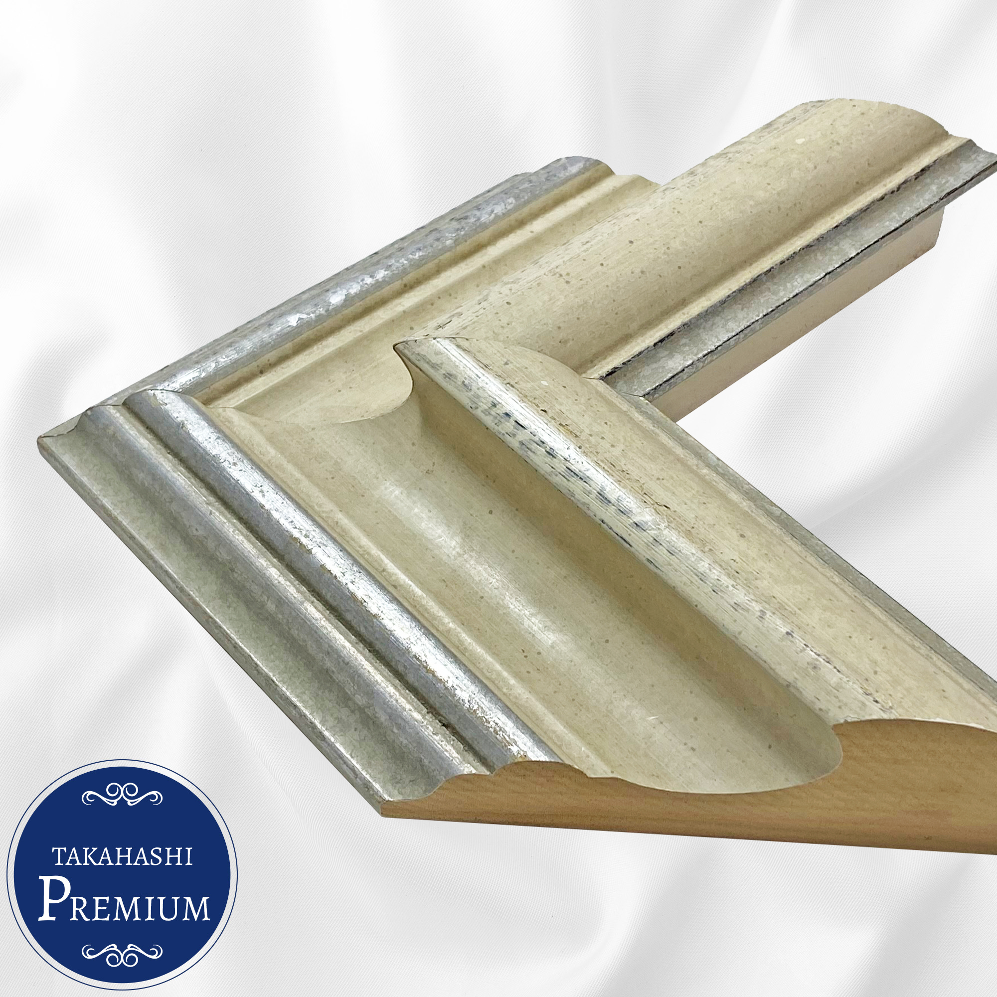 木製(アユース材)。イタリア製のオーダーフレーム。10cmのフレーム幅と丸みを帯びた複雑な形状。存在感と繊細さ、相反する雰囲気を持つ額縁です。