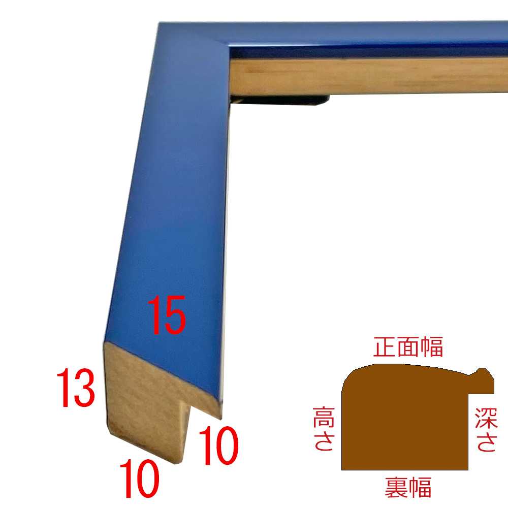木製(メンピサン)、オーダー製作専用フレーム。しっとり艶やかなカラーリングが美しい。はっきりとしたブルーのフレームです。ビビットな額装を存分に楽しめます。