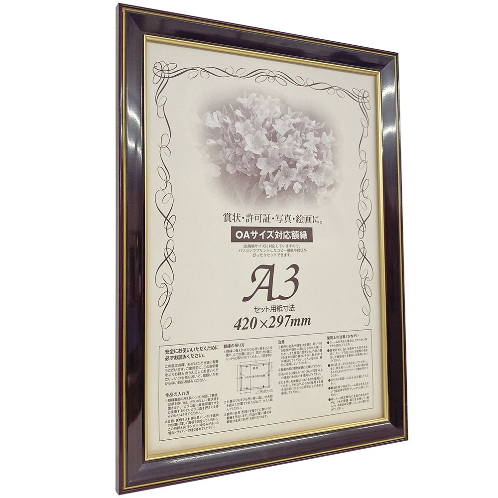 安価さと上品さを両立した、艶のあるフレームの賞状額