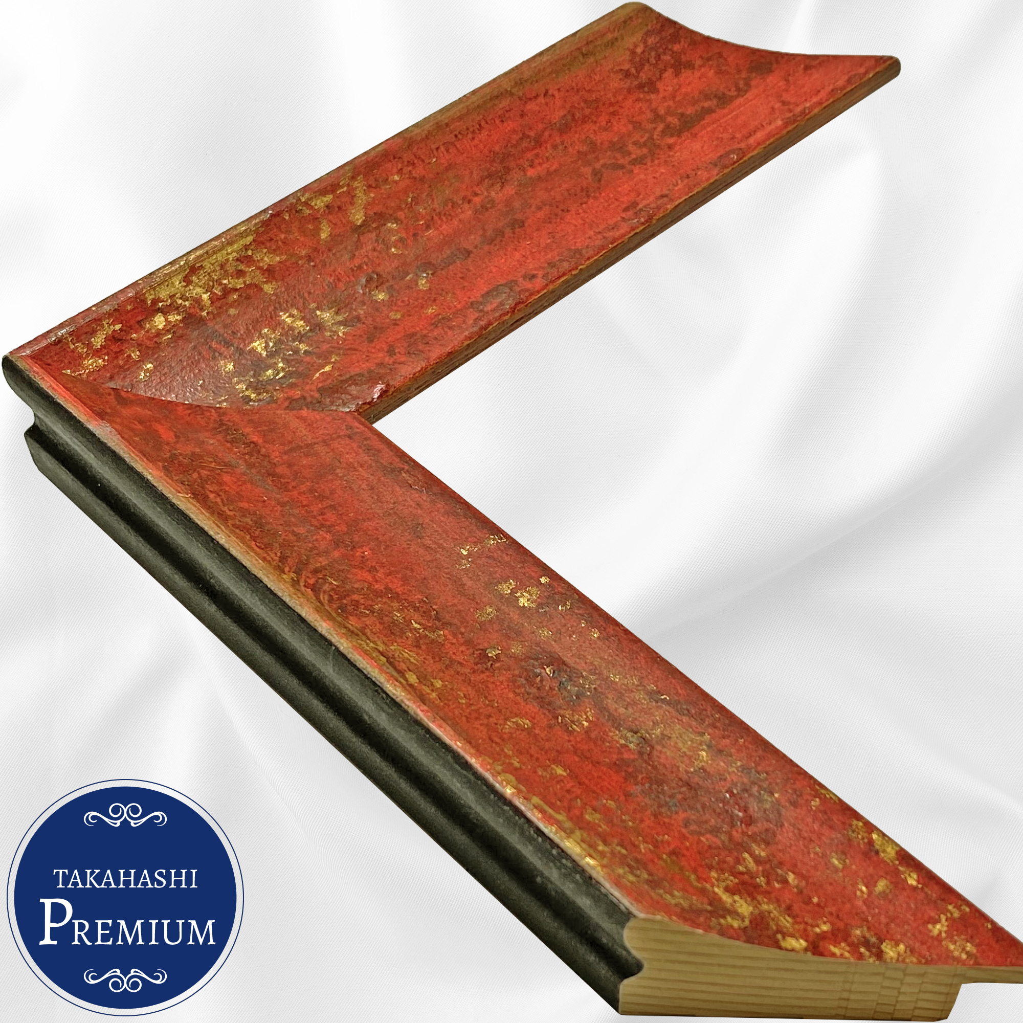 木製(パイン材)。イタリア製のオーダーフレーム。金箔が散りばめられた豪華絢爛なデザイン。和紙を連想させるような凹凸のある質感も特徴です。