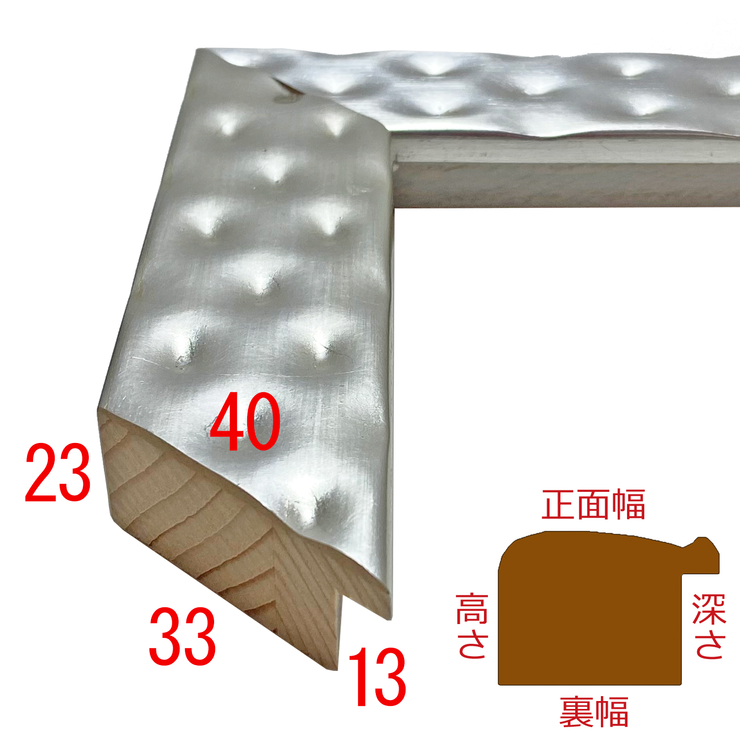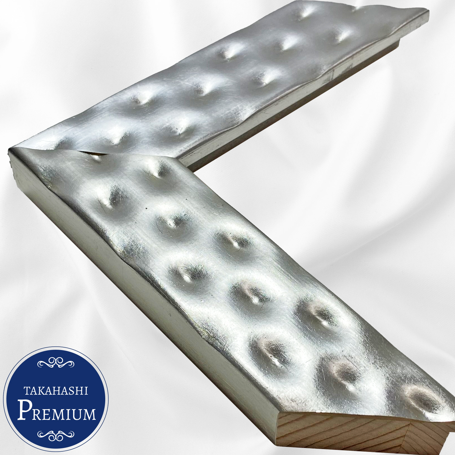 シルバーの箔貼りを施した、ベッドマットレスのような形状のフレーム