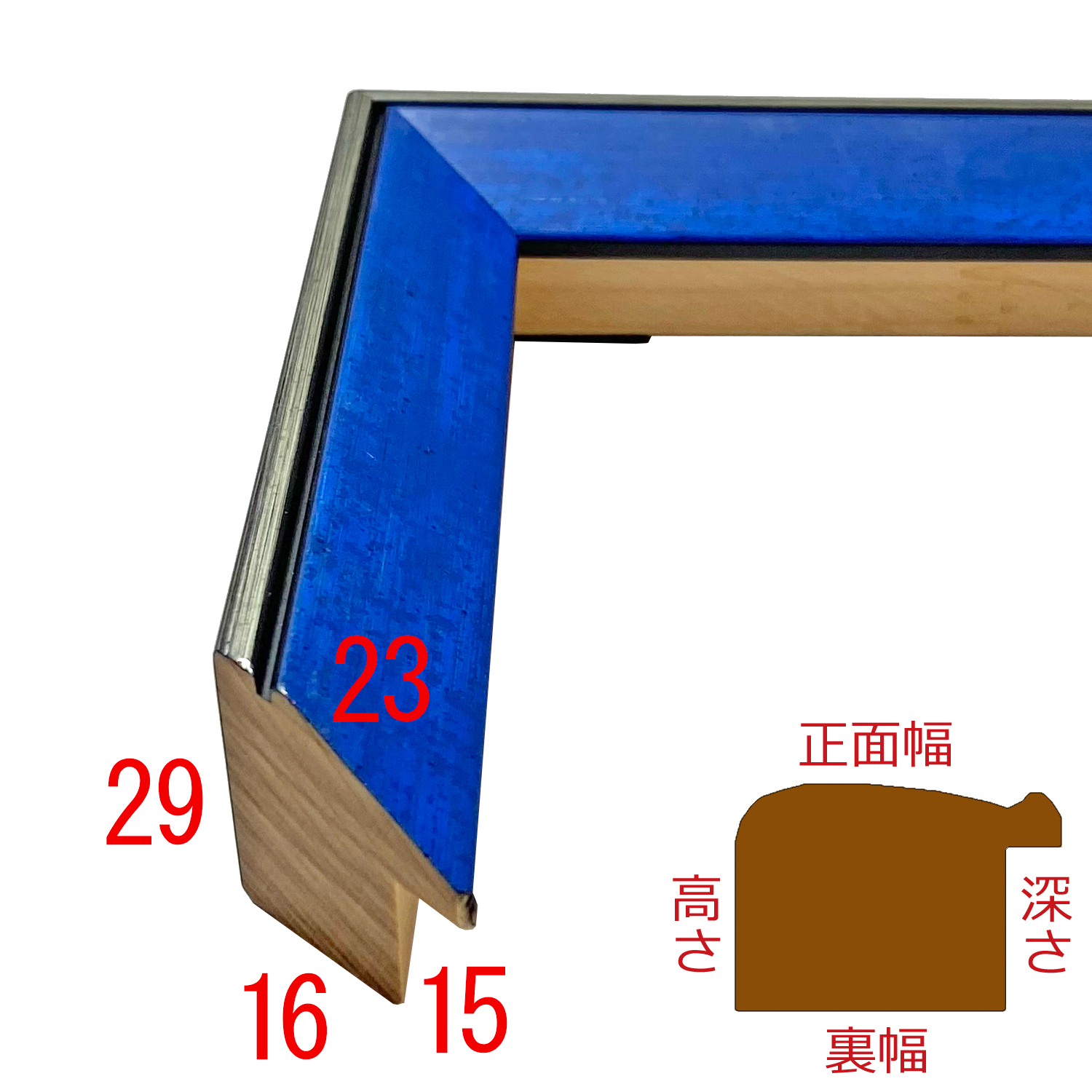 木製(ハンノキ)、イタリア産のフレーム。外側の銀と2色に塗り分けられたデザイン。内側の色がはっきりと際立ちます。ぱっと目を引くメリハリのある額装に。