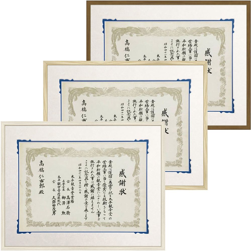 ナチュラルテイストで飾るシーンを選ばない賞状額です