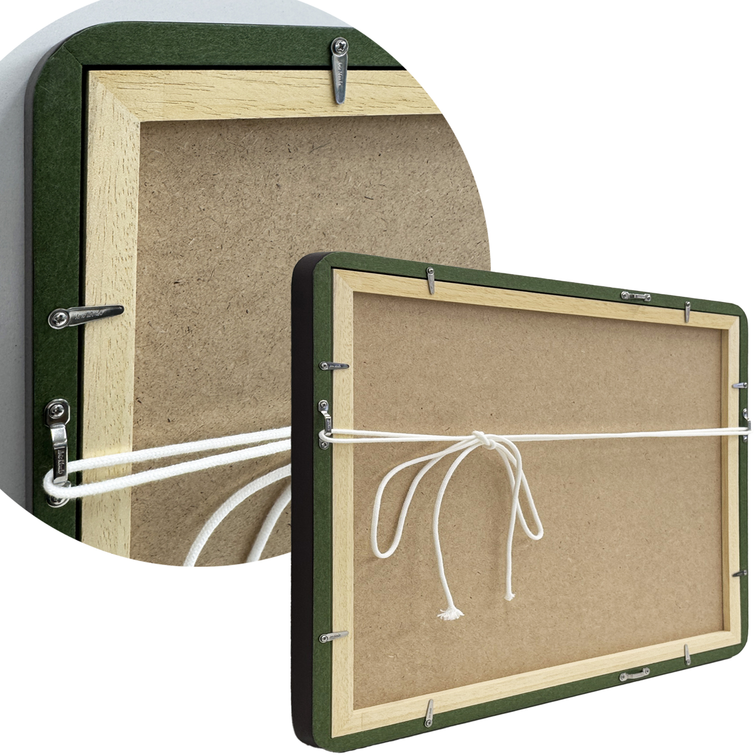 微妙な凹凸を付けた木製フレームに、落ち着きのあるカラーリングを施しました。