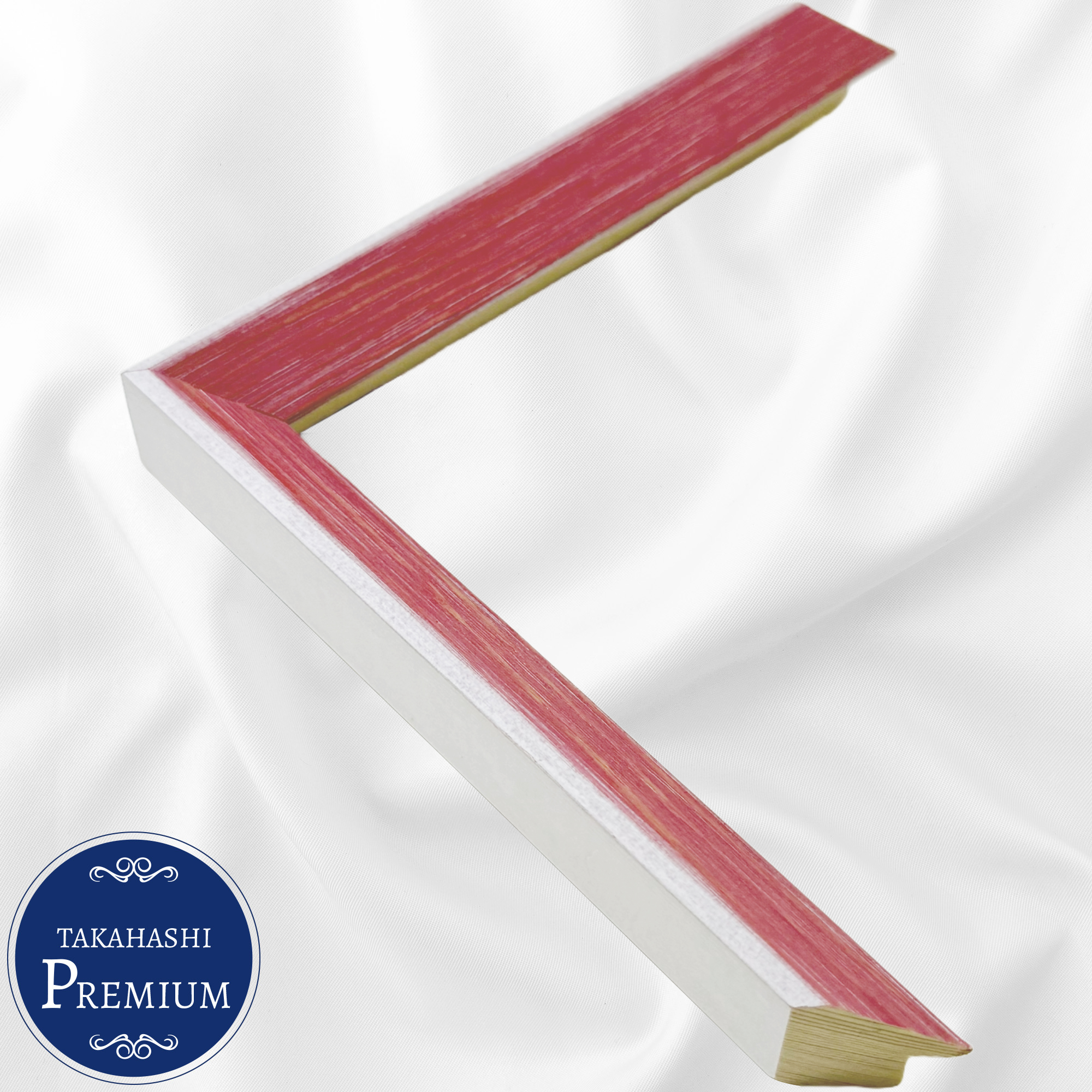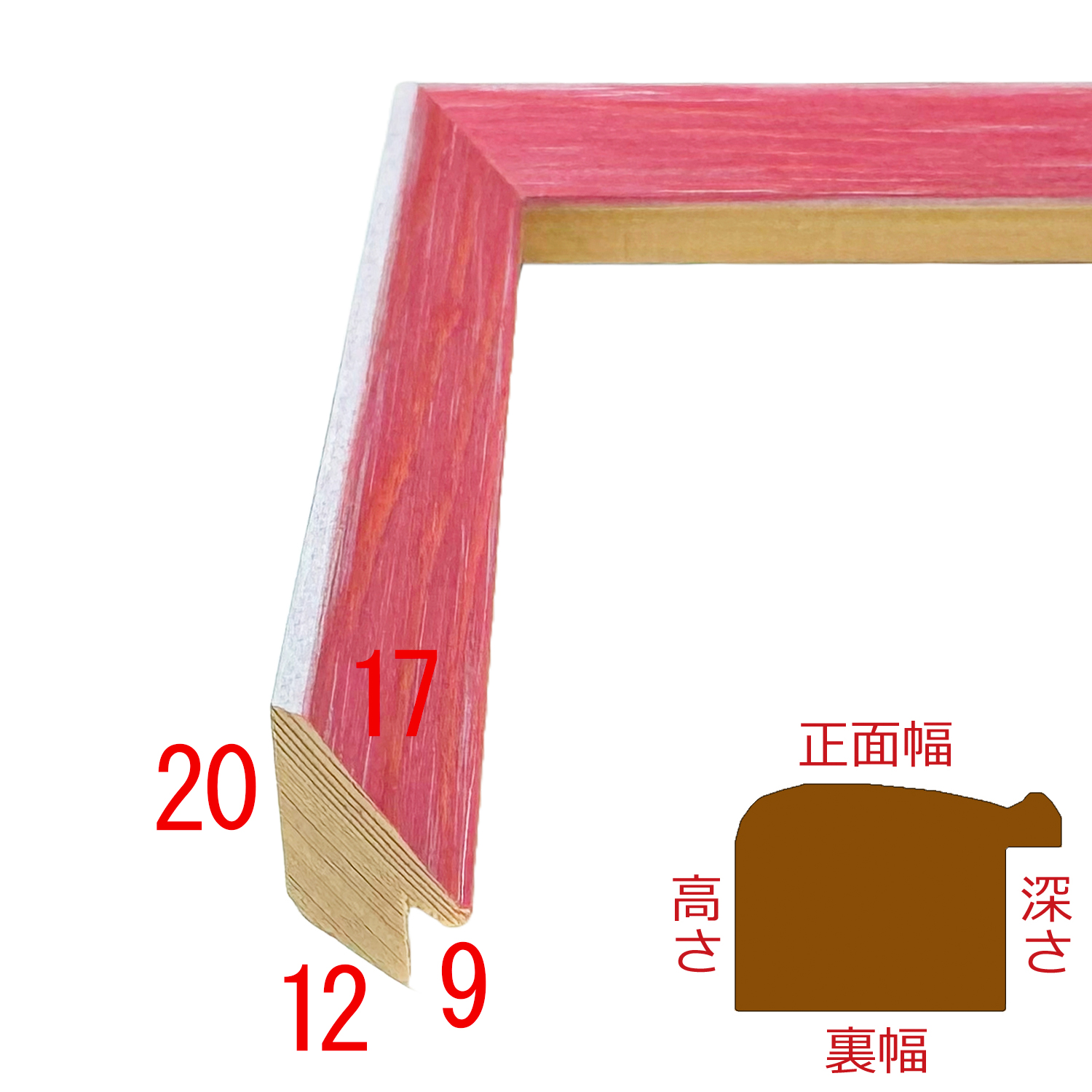 木製(パイン材)、イタリア産のオーダーフレーム。ナチュラル感を残した明るいピンク色。木目を活かしたビビットカラーが特徴です。
