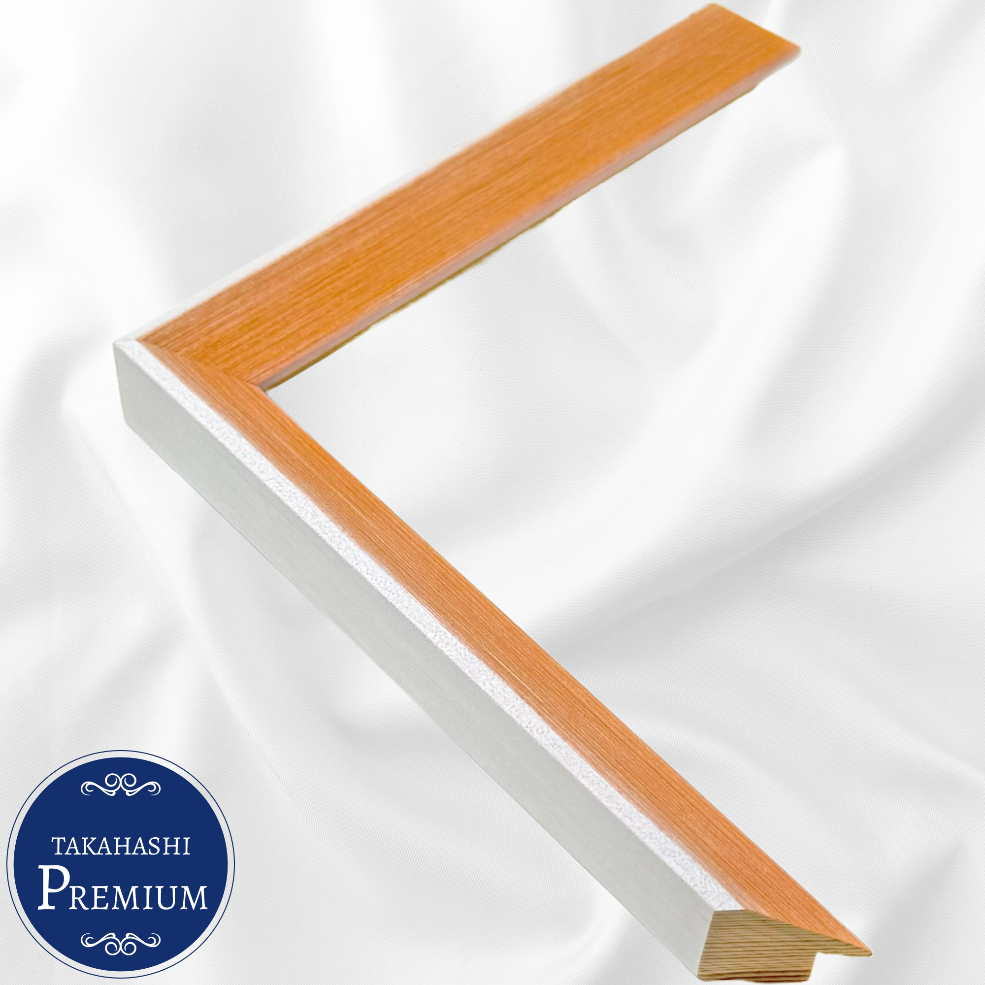 木製(パイン材)、イタリア産のオーダーフレーム。ナチュラル感を残した明るいオレンジ色。木目を活かしたビビットカラーが特徴です。