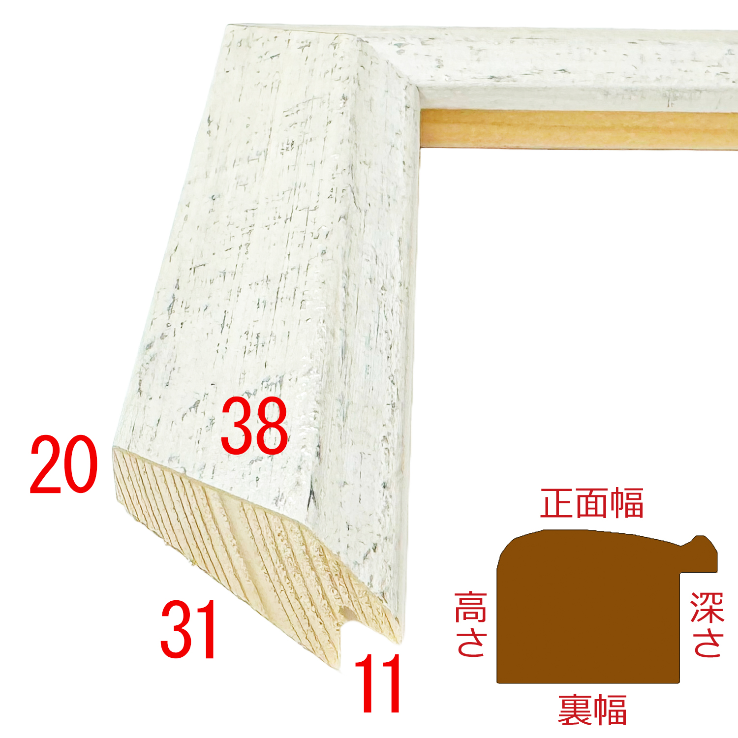 薄っすらと光沢の残るアンティークホワイトのフレーム