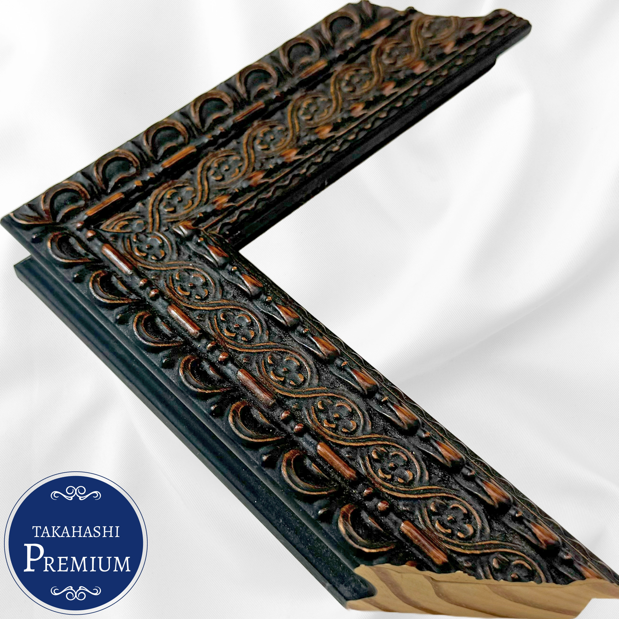 木製(パイン材)。スペイン製のオーダーフレーム。複雑・精巧な模様が繰り返される逸品。赤と黒の対比が強烈なインパクトを残します。