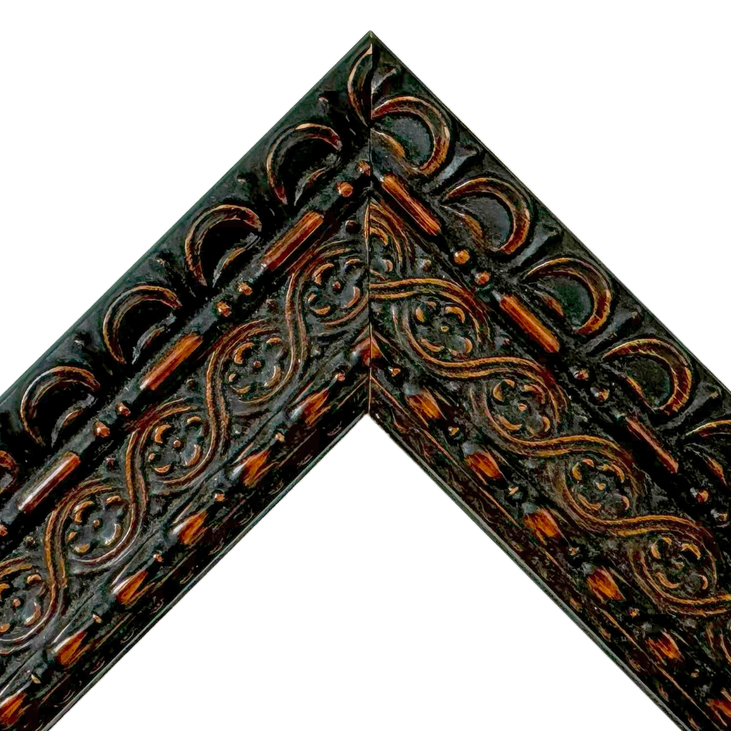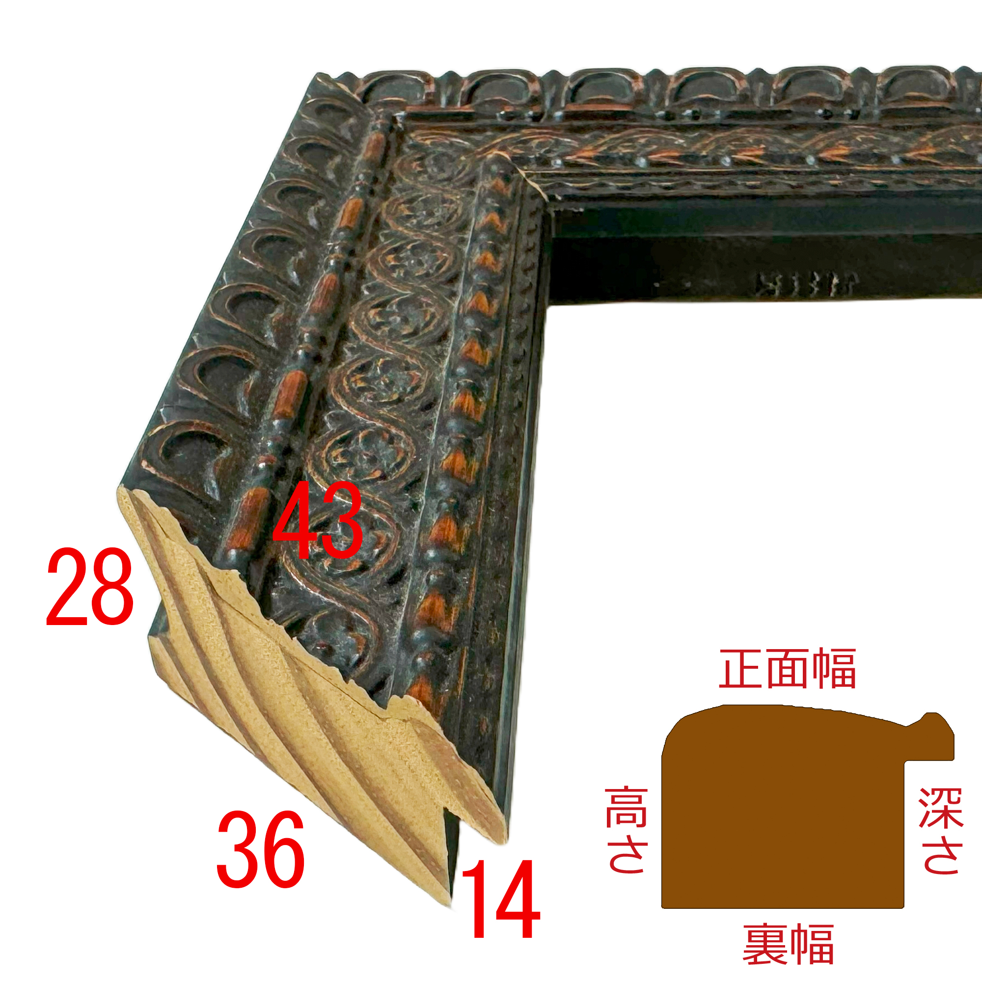 木製(パイン材)。スペイン製のオーダーフレーム。複雑・精巧な模様が繰り返される逸品。赤と黒の対比が強烈なインパクトを残します。