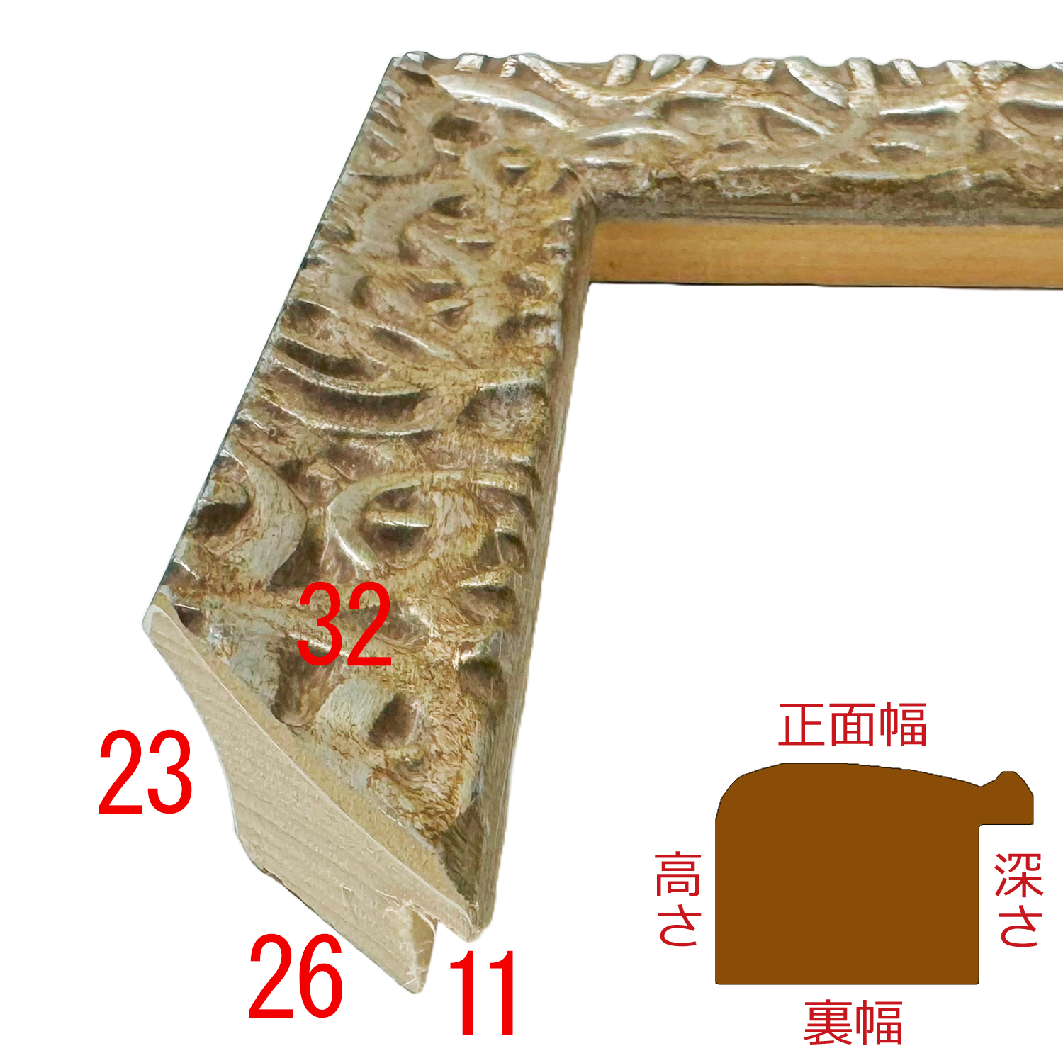 壁面から浮き出るような、壁に向かってえぐれた形状のフレームです