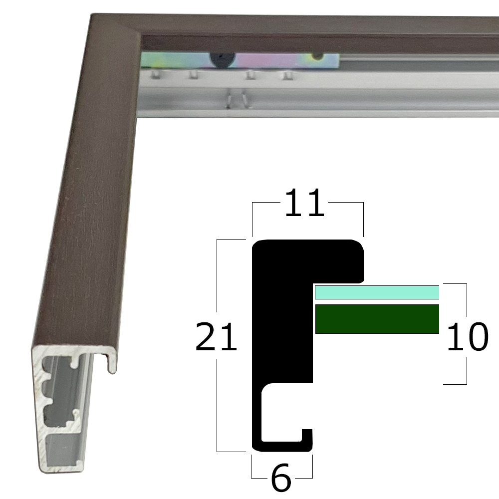 金属ならではのエッジを利かせた平角のシャープな額縁です。
