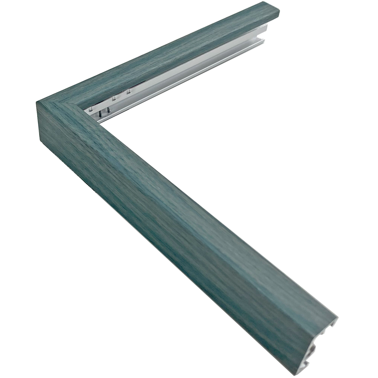木目のラッピング加工、カジュアルなブルー色のアルミフレーム