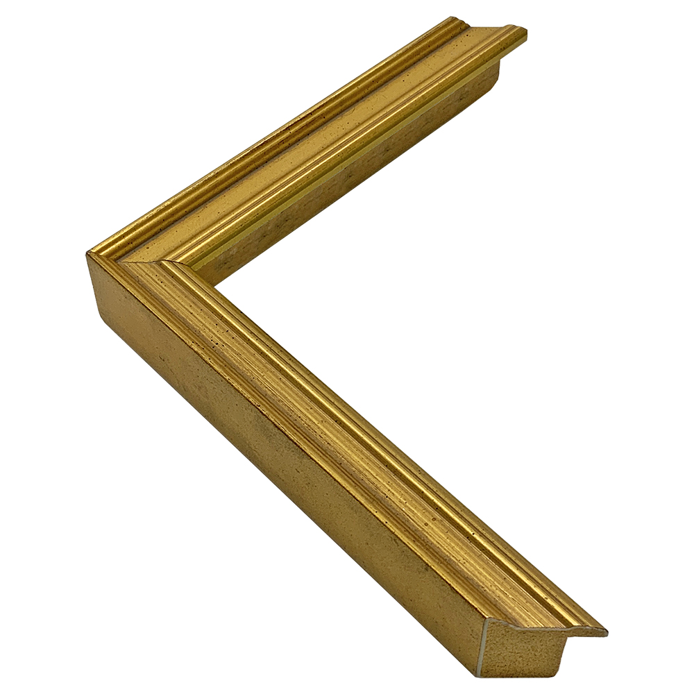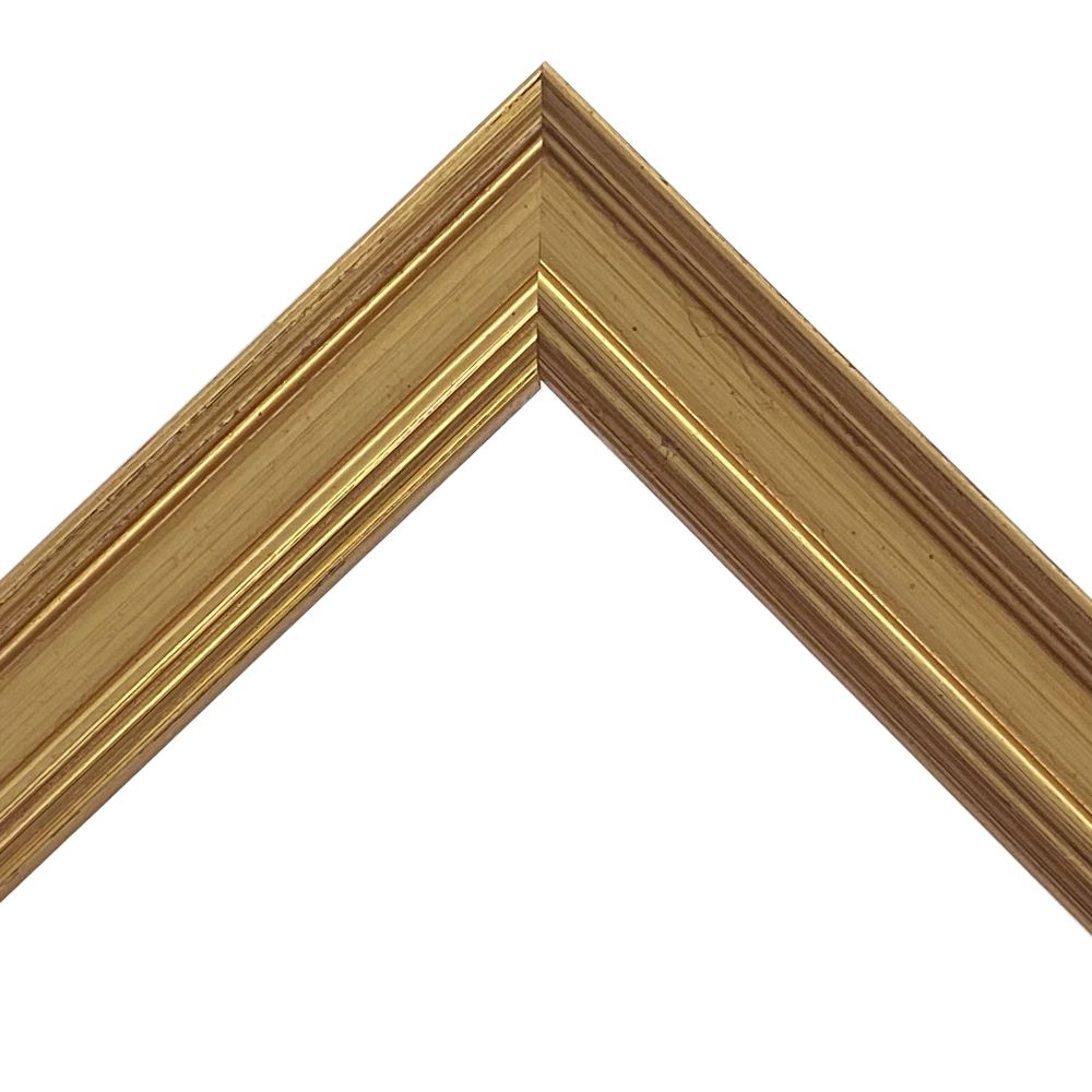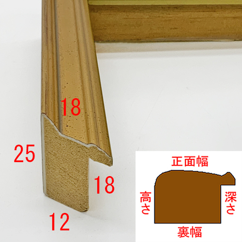 木製、オーダー製作専用フレーム。合わせやすいいぶし調のゴールド色。細身ながらも存在感のある形状がポイントです。