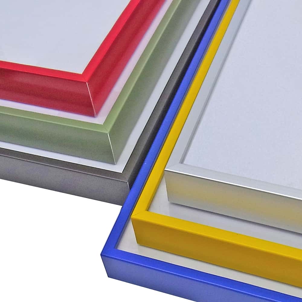一般額・SH-203Nを特注サイズでご用意。最小限のフレーム幅を角型の形状で実現。とことんシンプルな仕上がりを目指すアルミ額。木材に比べ、均一で安定した品質、色合いを誇ります。