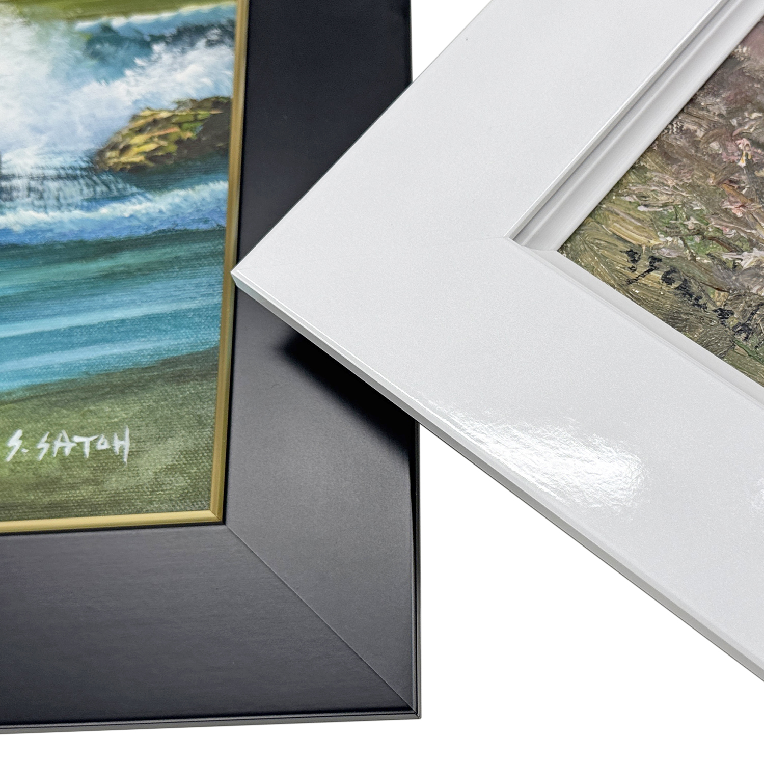 油絵額は絵画規格サイズで作られています。飾る作品と同サイズの額縁を選びましょう。はめ込み部分にはゆとりがあるので、1-2mmの誤差は問題ありません。セット方法については、こちらの動画でご紹介しております。 構造上、収納部のサイズ調整は困難です。規格外の作品には、こちらから特注サイズでご注文ください。