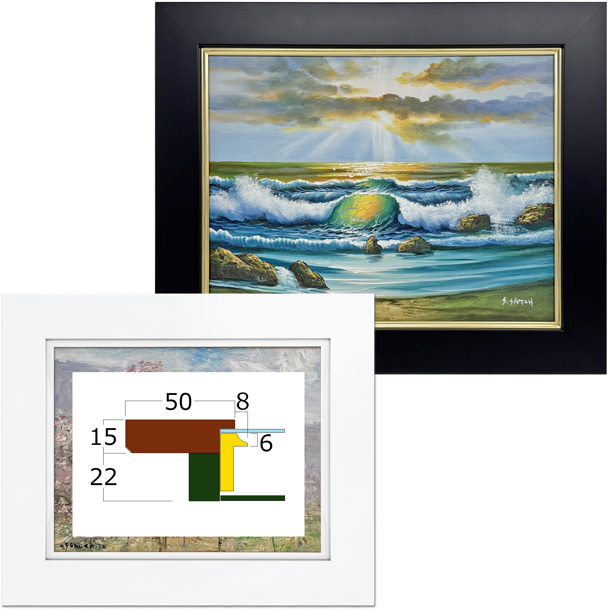 油絵額は絵画規格サイズで作られています。飾る作品と同サイズの額縁を選びましょう。はめ込み部分にはゆとりがあるので、1-2mmの誤差は問題ありません。セット方法については、こちらの動画でご紹介しております。 構造上、収納部のサイズ調整は困難です。規格外の作品には、こちらから特注サイズでご注文ください。