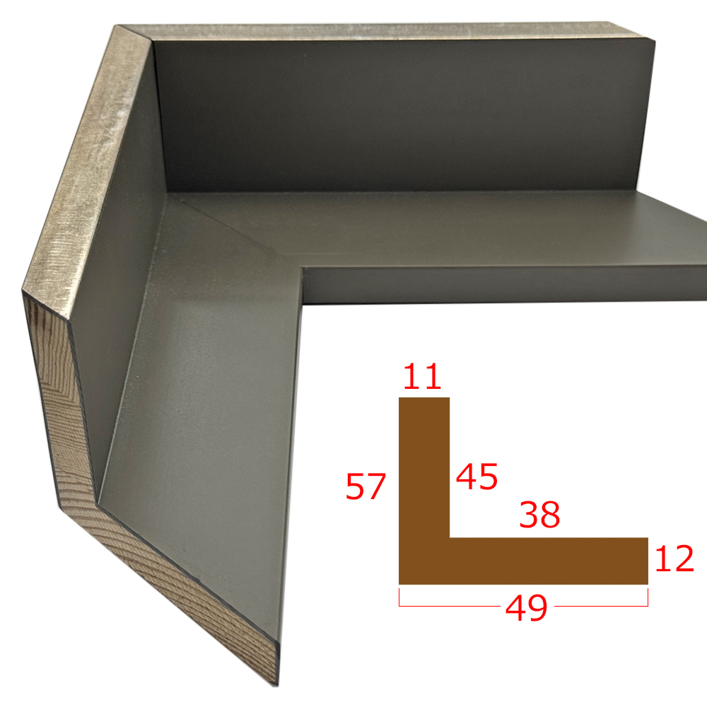 フロート額装用(浮かし額装用)の特殊モールディング。キャンバスやパネルを背面からネジ止めしてセットします。ネット上のご注文には未対応なので、お見積もりをご依頼ください。表面カバーは付けられないので、作品が剥き出しになります。短手900ミリまでの、縦横合計2400ミリまでで製作可能です。フロート額は、金属製の仮縁でもいくつかご用意しております。