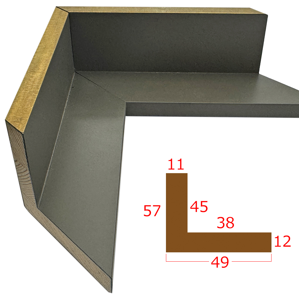 フロート額装用(浮かし額装用)の特殊モールディング。キャンバスやパネルを背面からネジ止めしてセットします。ネット上のご注文には未対応なので、お見積もりをご依頼ください。表面カバーは付けられないので、作品が剥き出しになります。短手900ミリまでの、縦横合計2400ミリまでで製作可能です。フロート額は、金属製の仮縁でもいくつかご用意しております。
