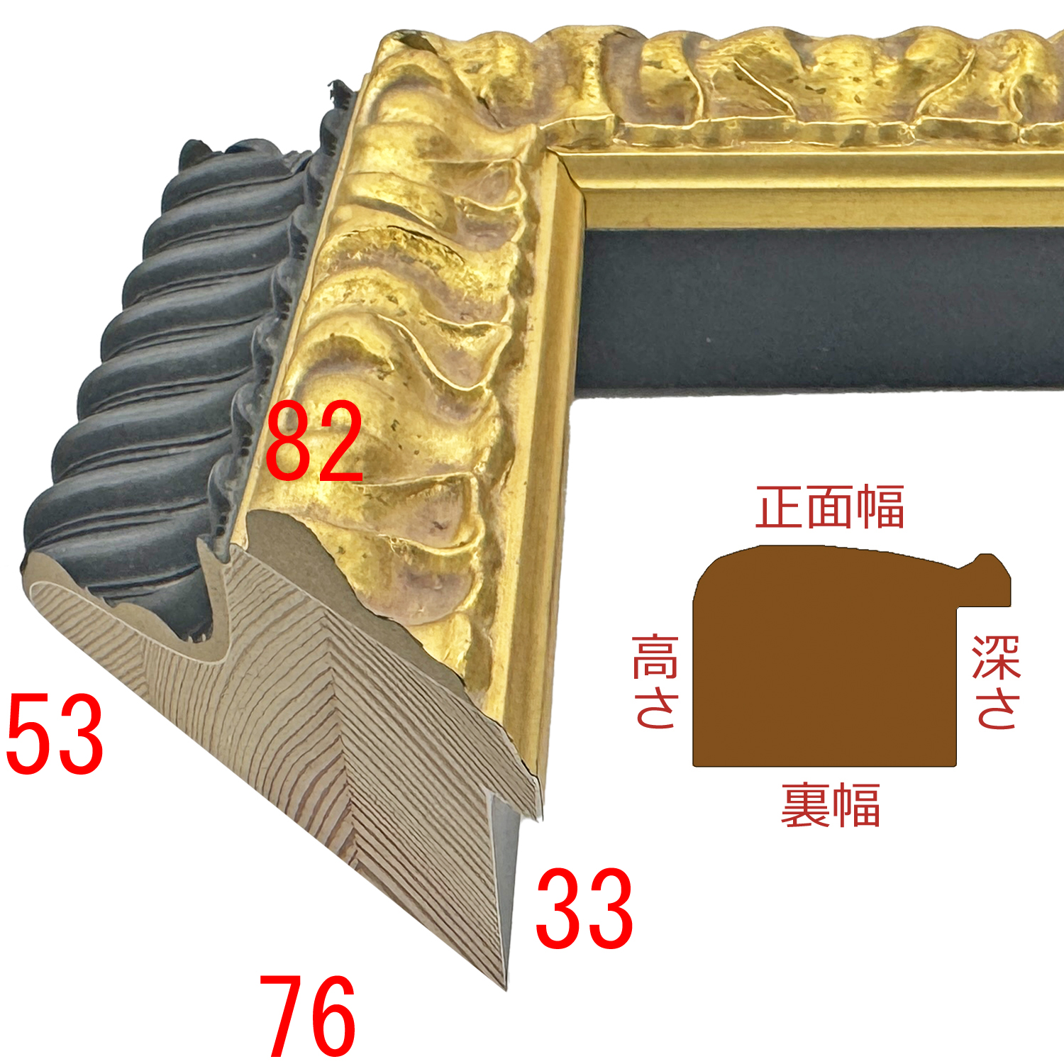 外流れと内側の高低差と金と黒の対比が、幅広のボリュームを更に強調します