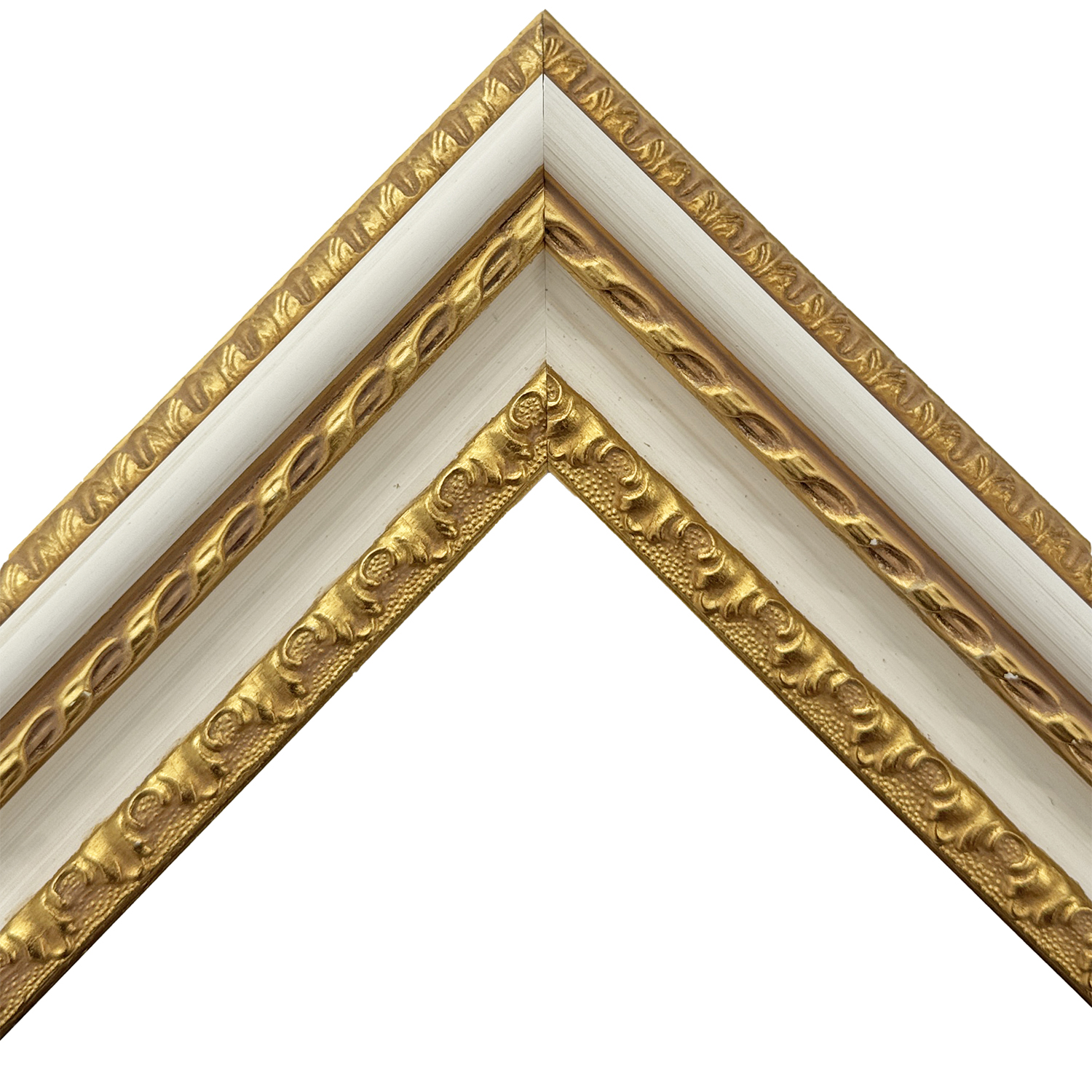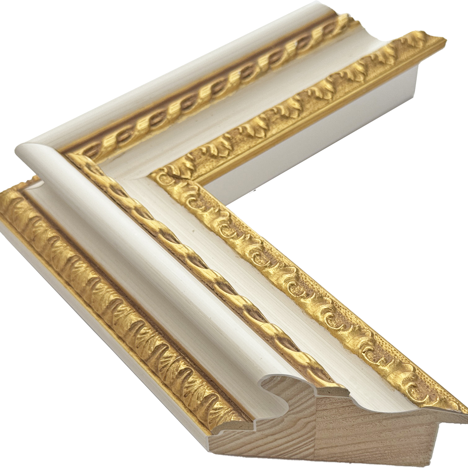 ヴィクトリア調の家具から着想を得た、白と金の対比が目を引くフレーム
