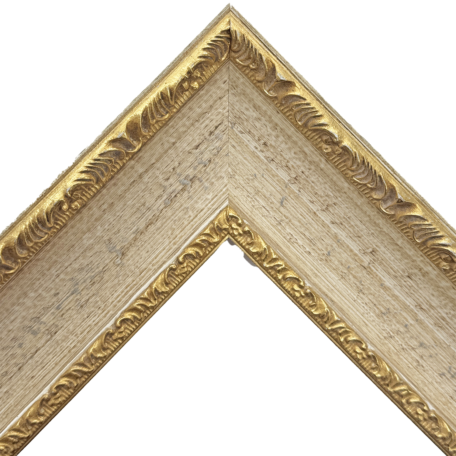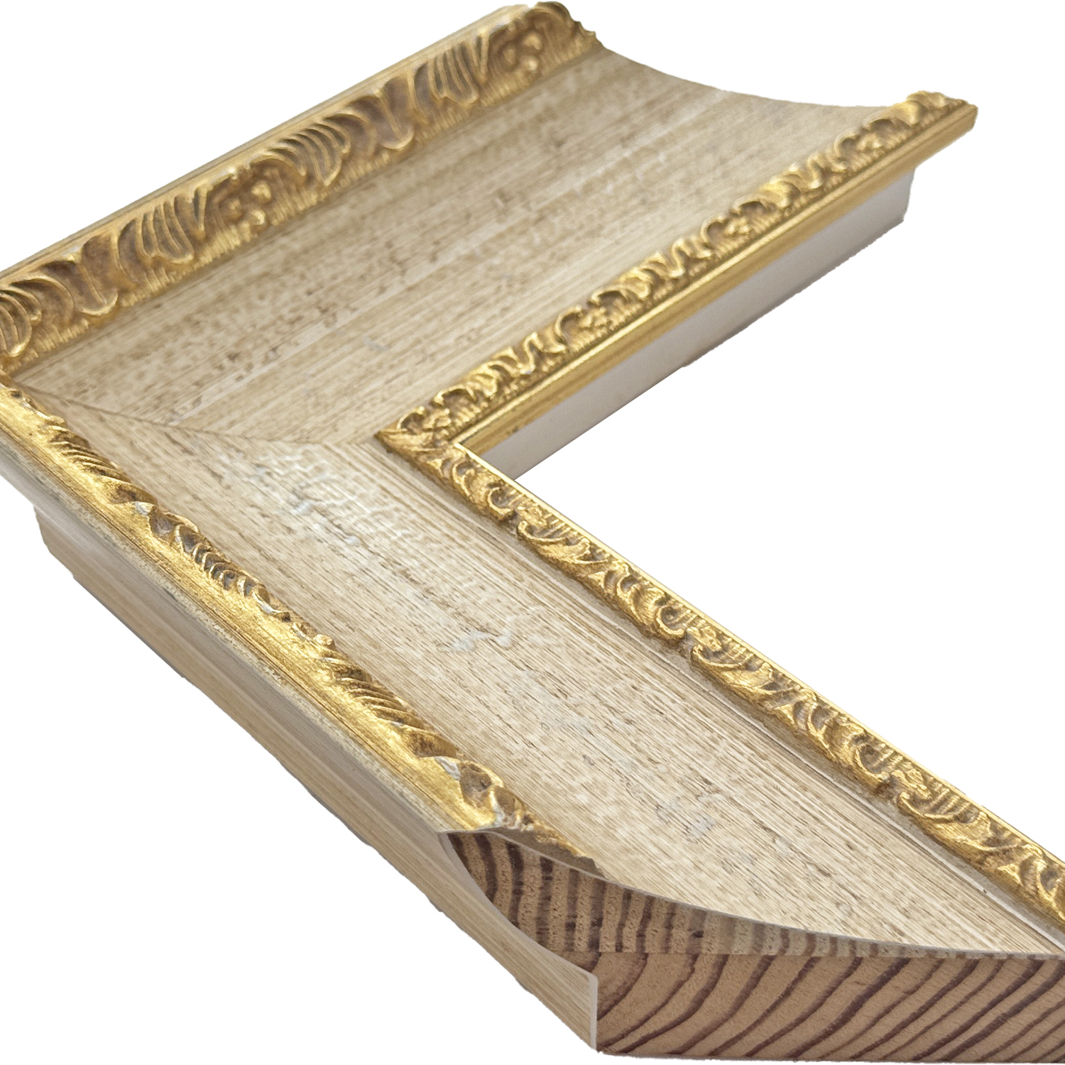 モミ材のオーダーフレーム、外側にぐっと盛り上がったエッジに施された繊細な装飾が美しい
