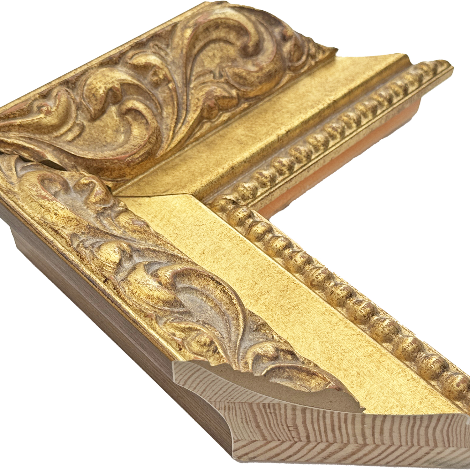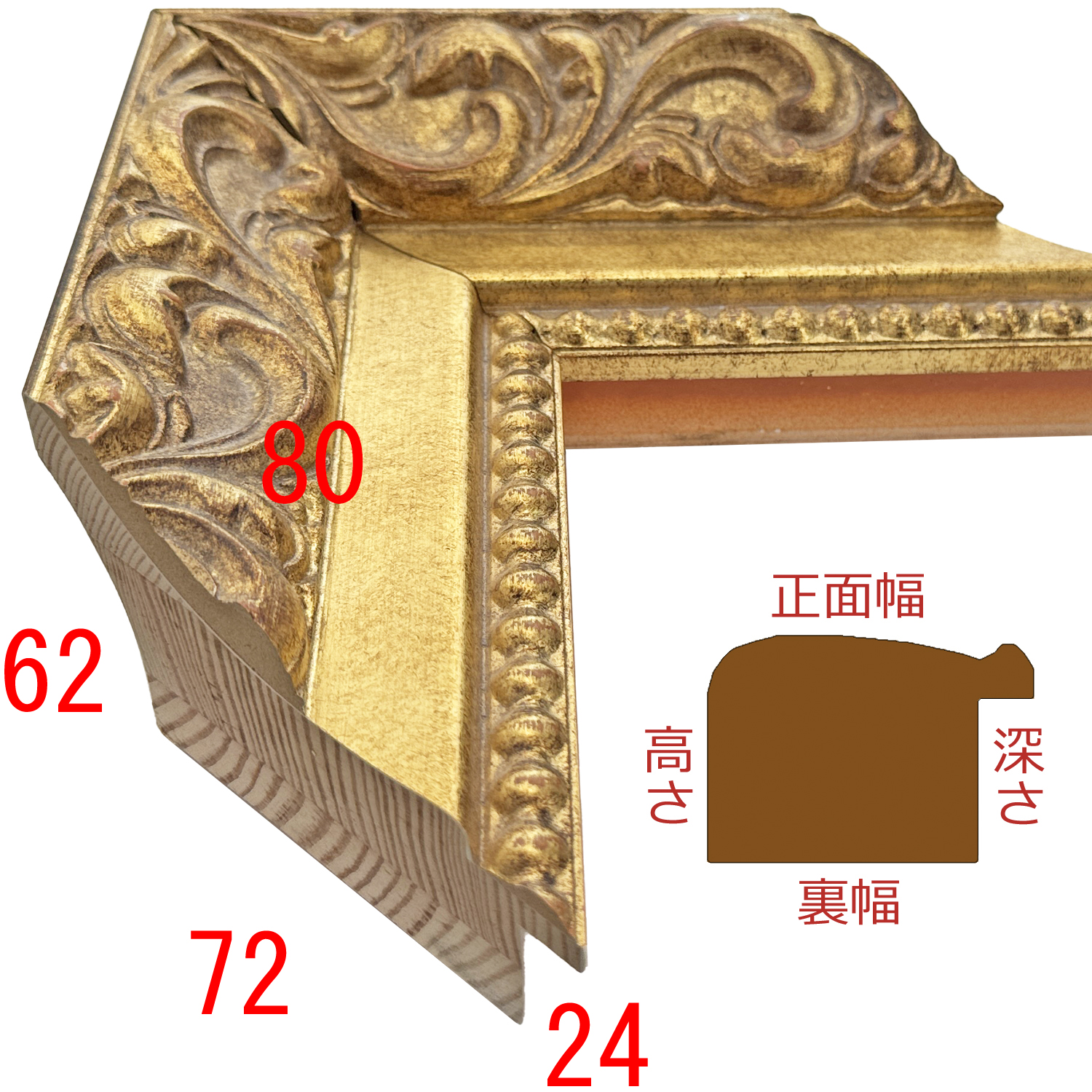 古典的なボタニカル模様に、アンティーク調の仕上げが美しい幅広のゴールドフレーム