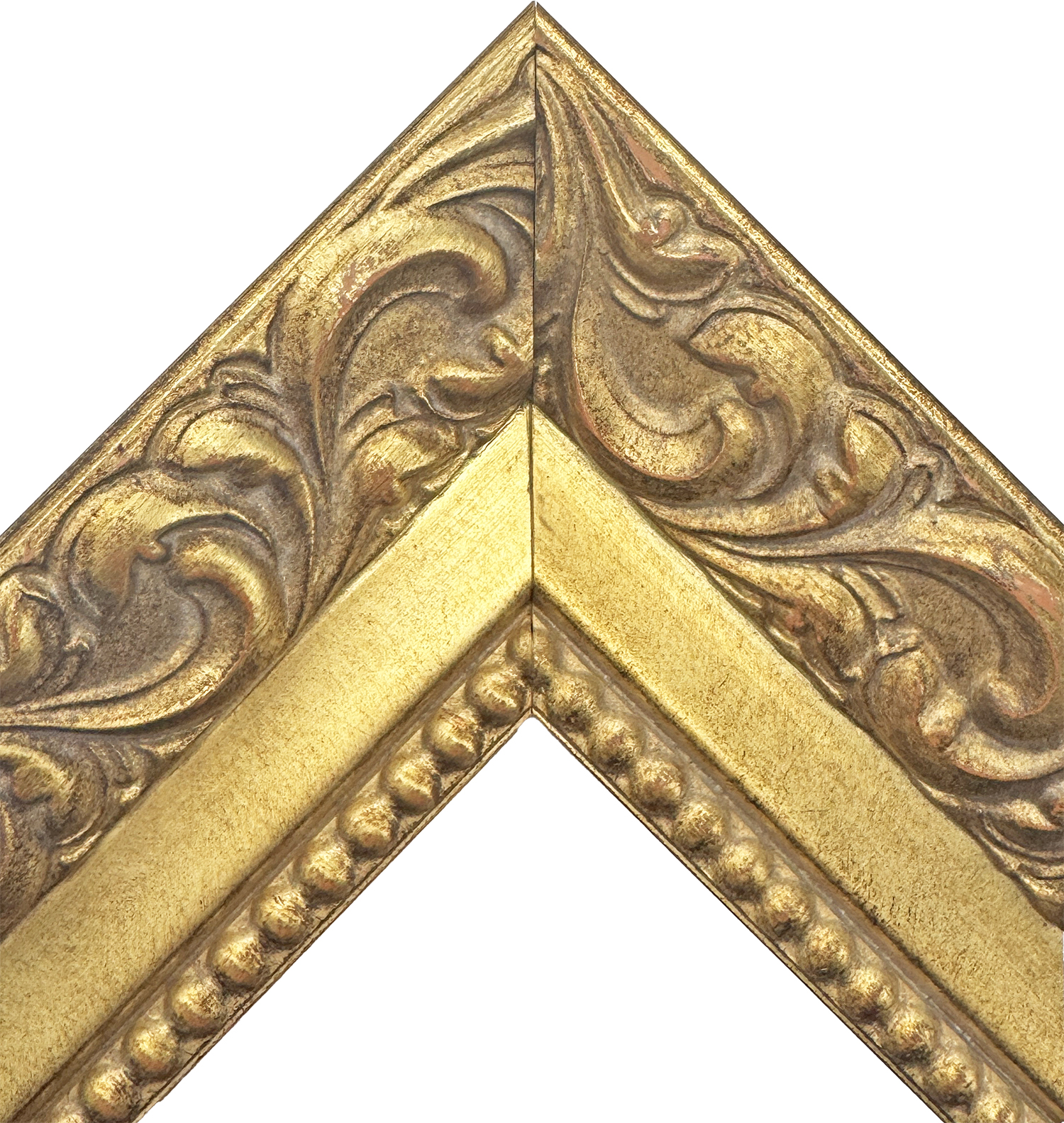 古典的なボタニカル模様に、アンティーク調の仕上げが美しい幅広のゴールドフレーム
