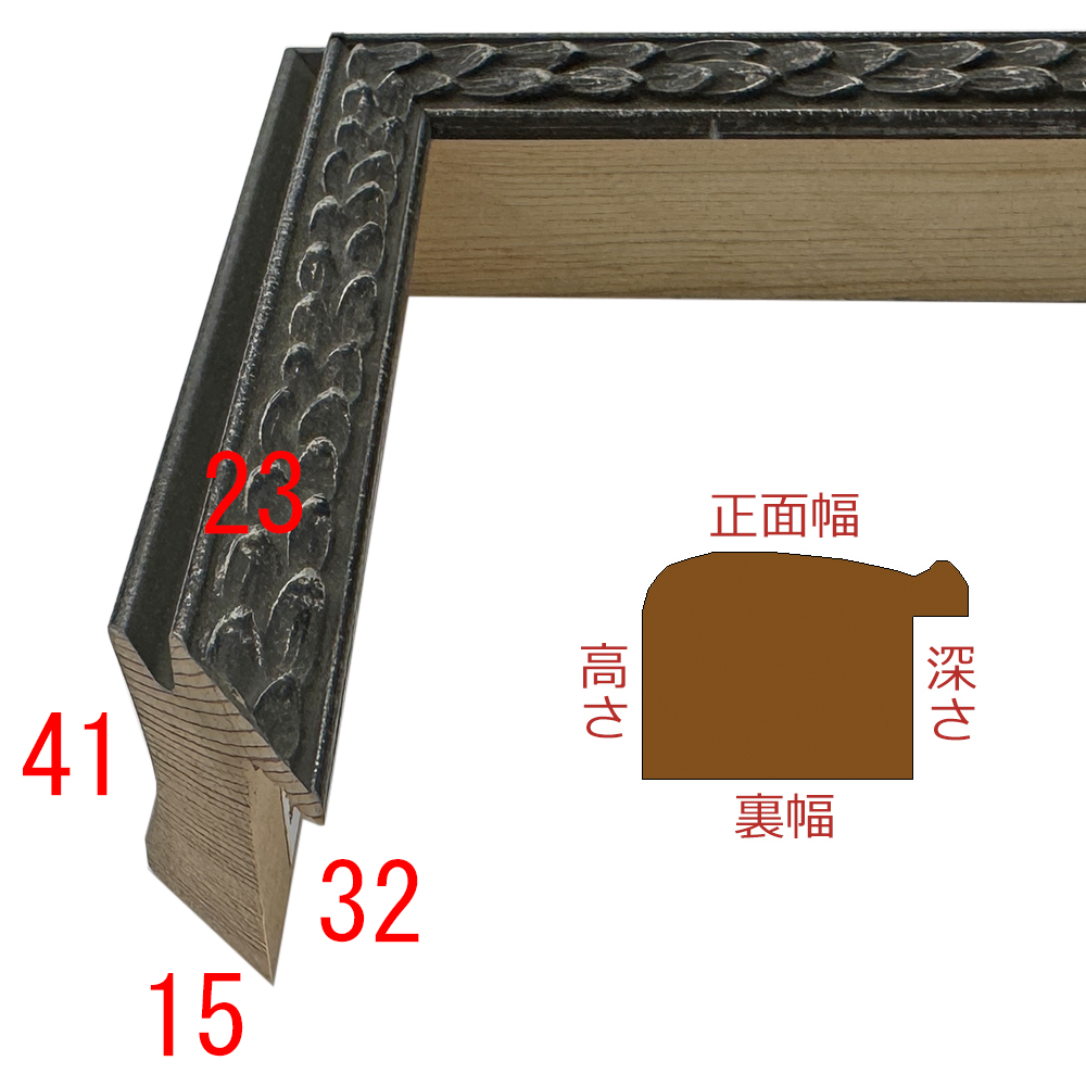 月桂樹のモチーフにアンティーク調の仕上げが施された、アンティークブラックのフレーム