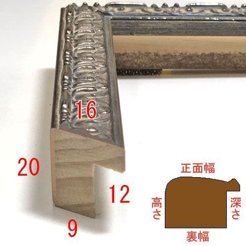 一般額・ジュリエットを特注サイズで。銀箔貼りと黒塗装のアンティーク調。手の込んだ彫りが施された木製額です。細身ながらも存在感があります。