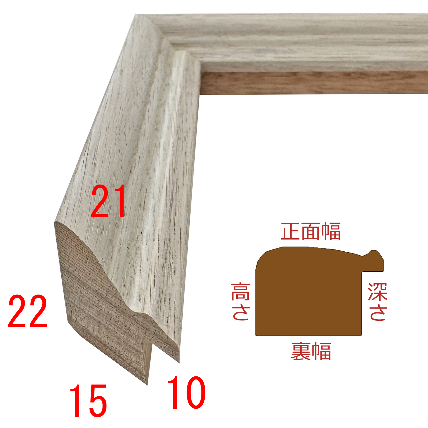 木製(南洋材)、オーダー製作専用フレーム。木目の風合いを活かしながら、素朴でナチュラルなカラーがやさしく空間に溶け込む、温もりあふれるモールディング。