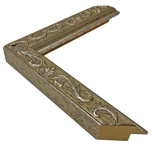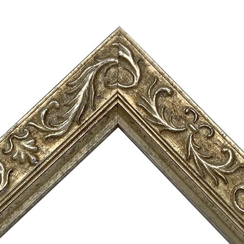 木製。オーダー製作専用のフレームです。渋めの銀色に高級感が感じられる額縁。太さは控えめですが存在感があります。