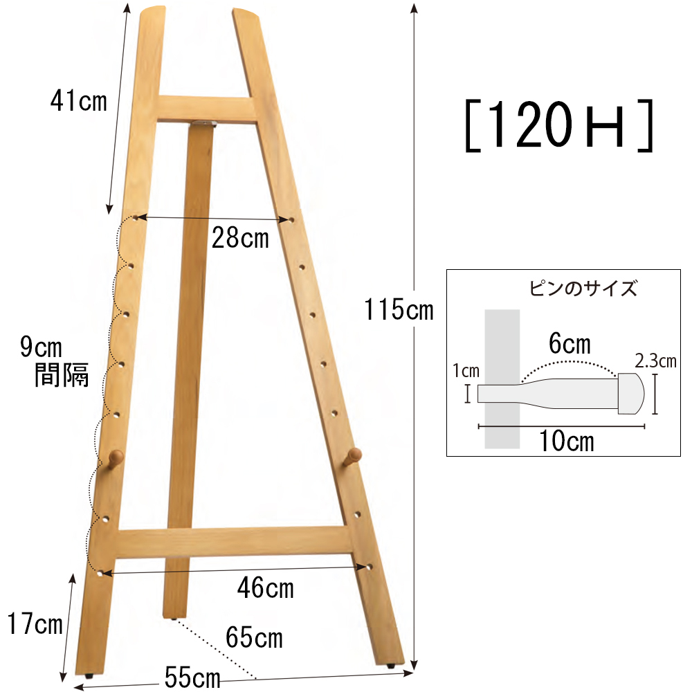 額を置いた時のイーゼルの頂点が、額縁高さの2/3以上に届く必要があります。