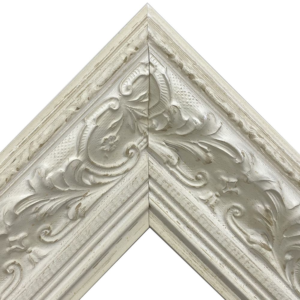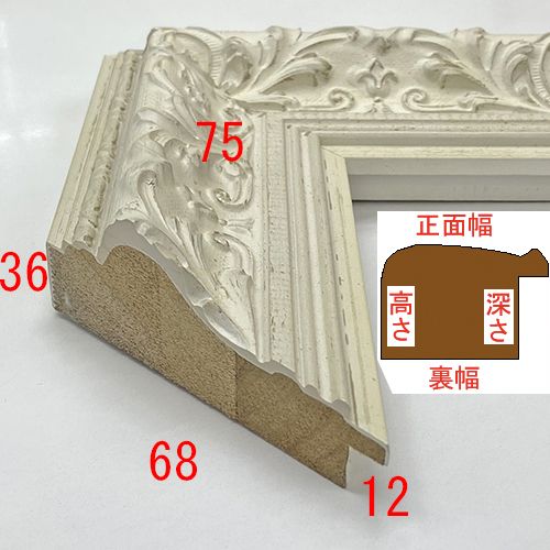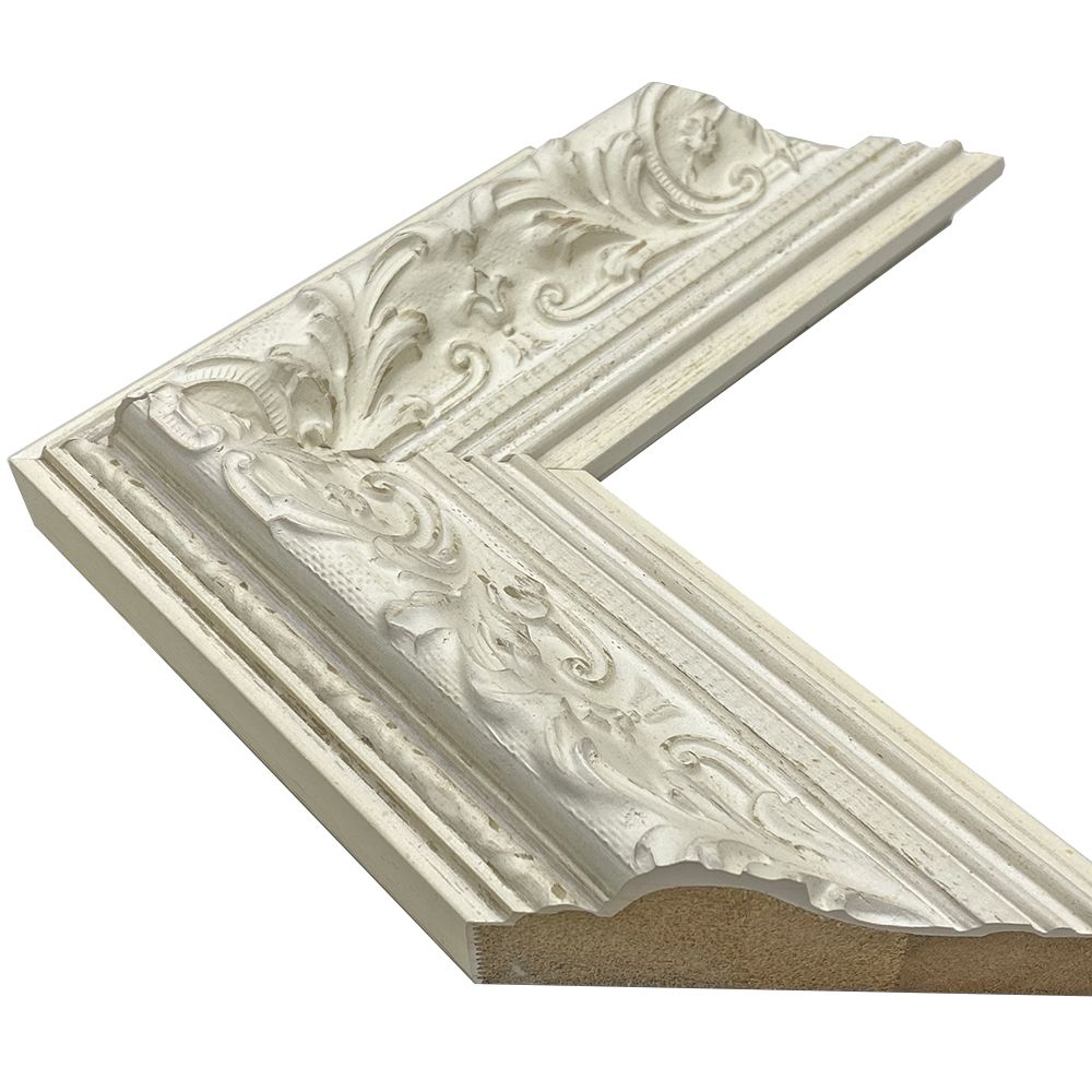木製、オーダー製作専用フレーム。植物の型が大胆にかたどられたホワイトフレーム。