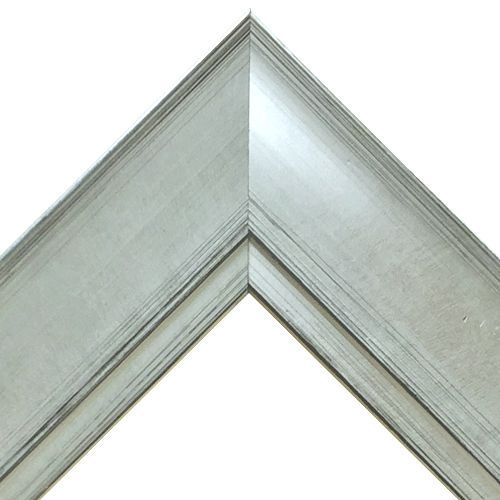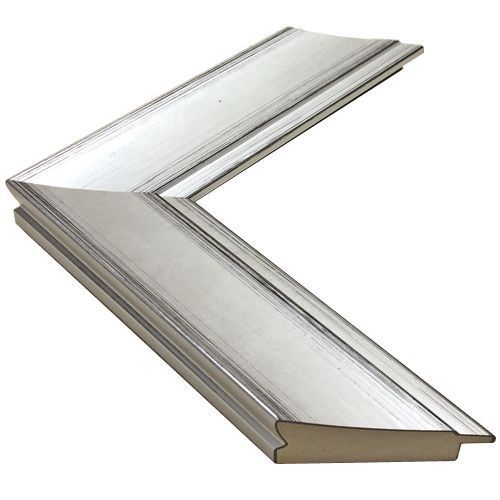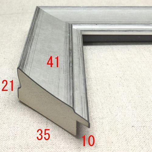 木製(パイン材)、オーダー製作専用フレーム。メタリック調のシルバー塗装を施した額縁です。シャープな形状が色合いを際立たせます。