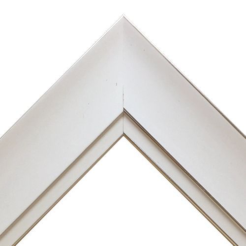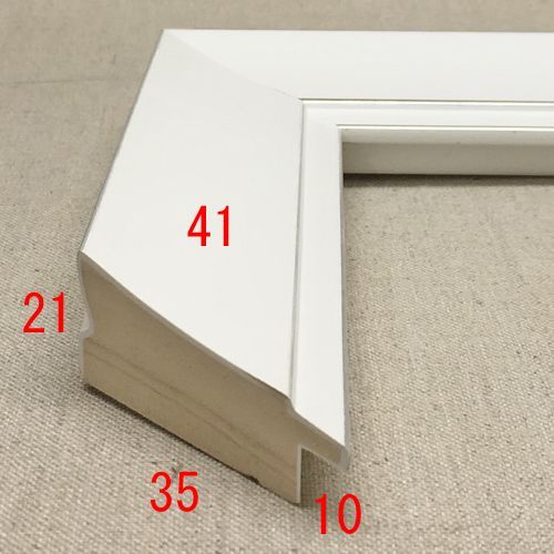 木製(パイン材)、オーダー製作専用フレーム。つや消し白にシルバーラインが輝く。シャープな形状ですっきりと仕上げます。