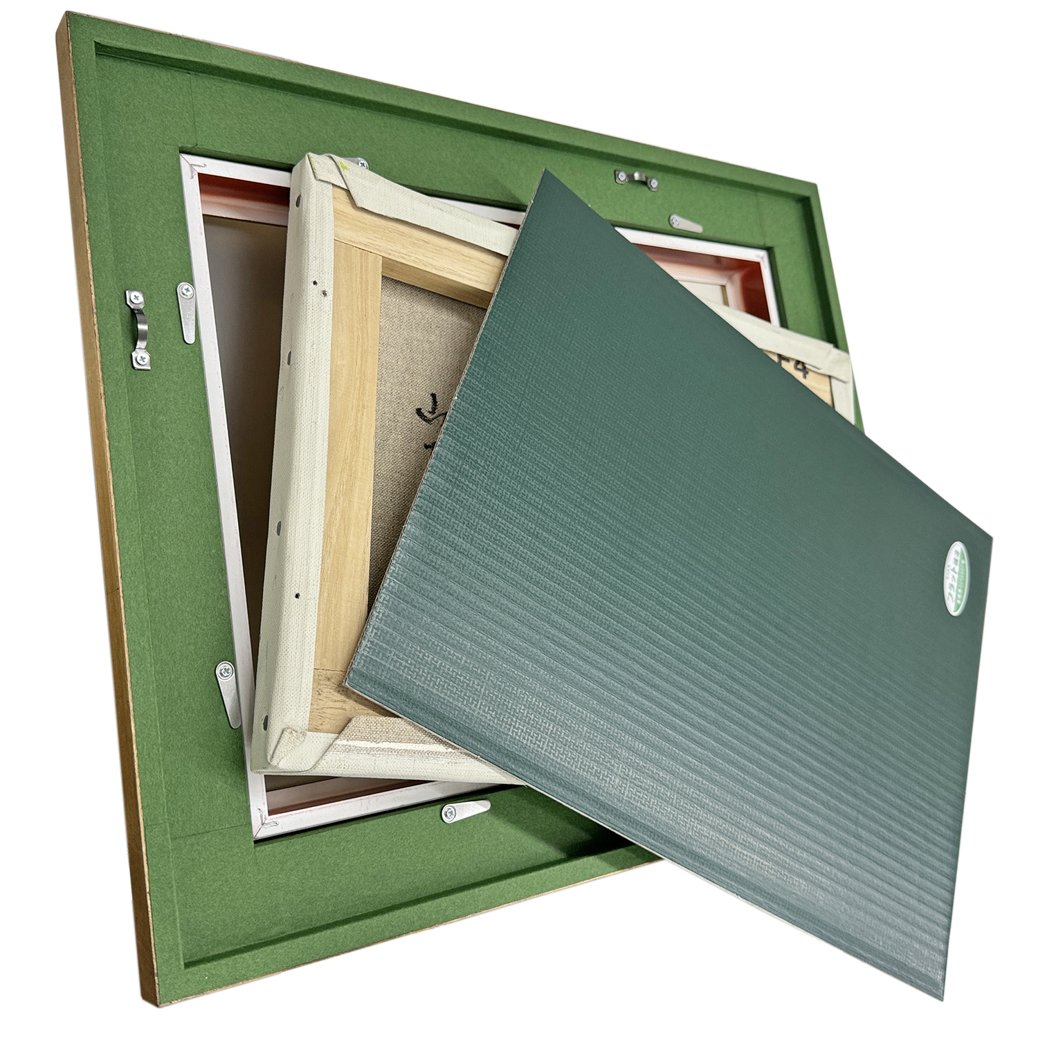 フラット構造で壁と平行に近い状態で飾れる油絵額縁