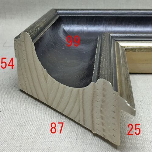 木製(パイン材)、オーダー製作専用フレーム。フレーム中央を大きく抉った極太の額縁です。フレームに負けない力強い作品に使いましょう。