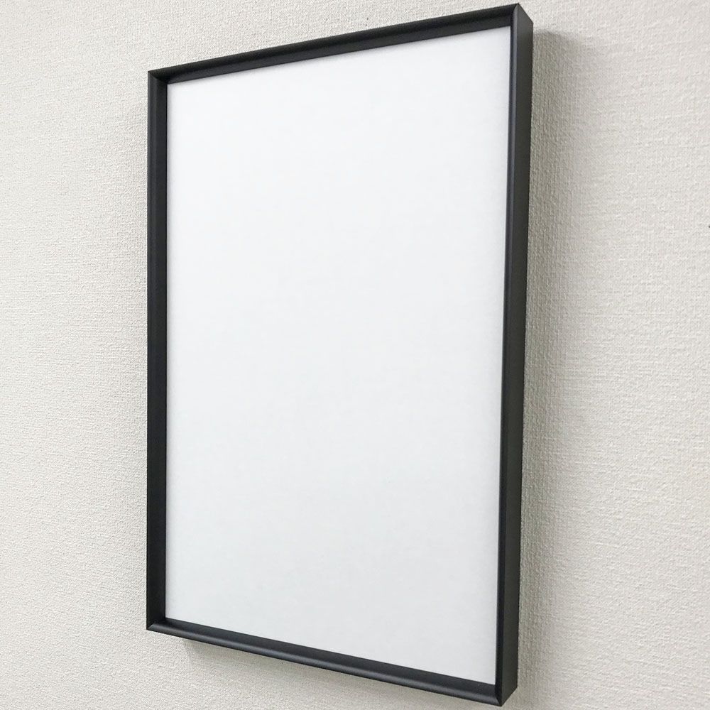 「LEAN」を特注サイズでご用意。側面が微妙に切り落とされた形状。額縁の側面が目立たず、正面に集中させます。内側の緩やかな曲線が優しい印象も与えます。ショットブラスト風のマット色がクールです。UVカットアクリルが標準で付属します。木材に比べ、均一で安定した品質、色合いを誇ります。