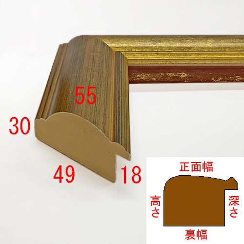 木製、オーダー製作専用フレーム。金箔を磨き出して、下地を露出させました。赤や黒が見え隠れするゴールドフレームです。